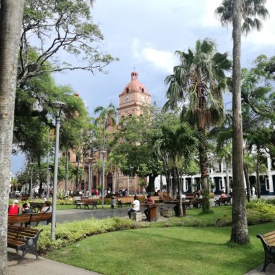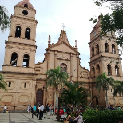 Santa Cruz, la plus grande ville de Bolivie où se mélange forte chaleur et humidité nous à vaguement rappeler l’Amazonie par son climat. En se promenant dans les rues avec les nombreux bâtiments de style colonial on aurait tendance à se croire dans une petite bourgade tropicale plutôt que dans une grande ville. La ville et ses environs valent la peine, je pense, de s’y attarder quelques jours mais nous y sommes arrivés à une période où nous ne voulions pas nous retrouver dans une grande ville (ça arrive non ?), du coup nous avons profités de la ville seulement une journée avant de rejoindre le petit village de Samaïpata.