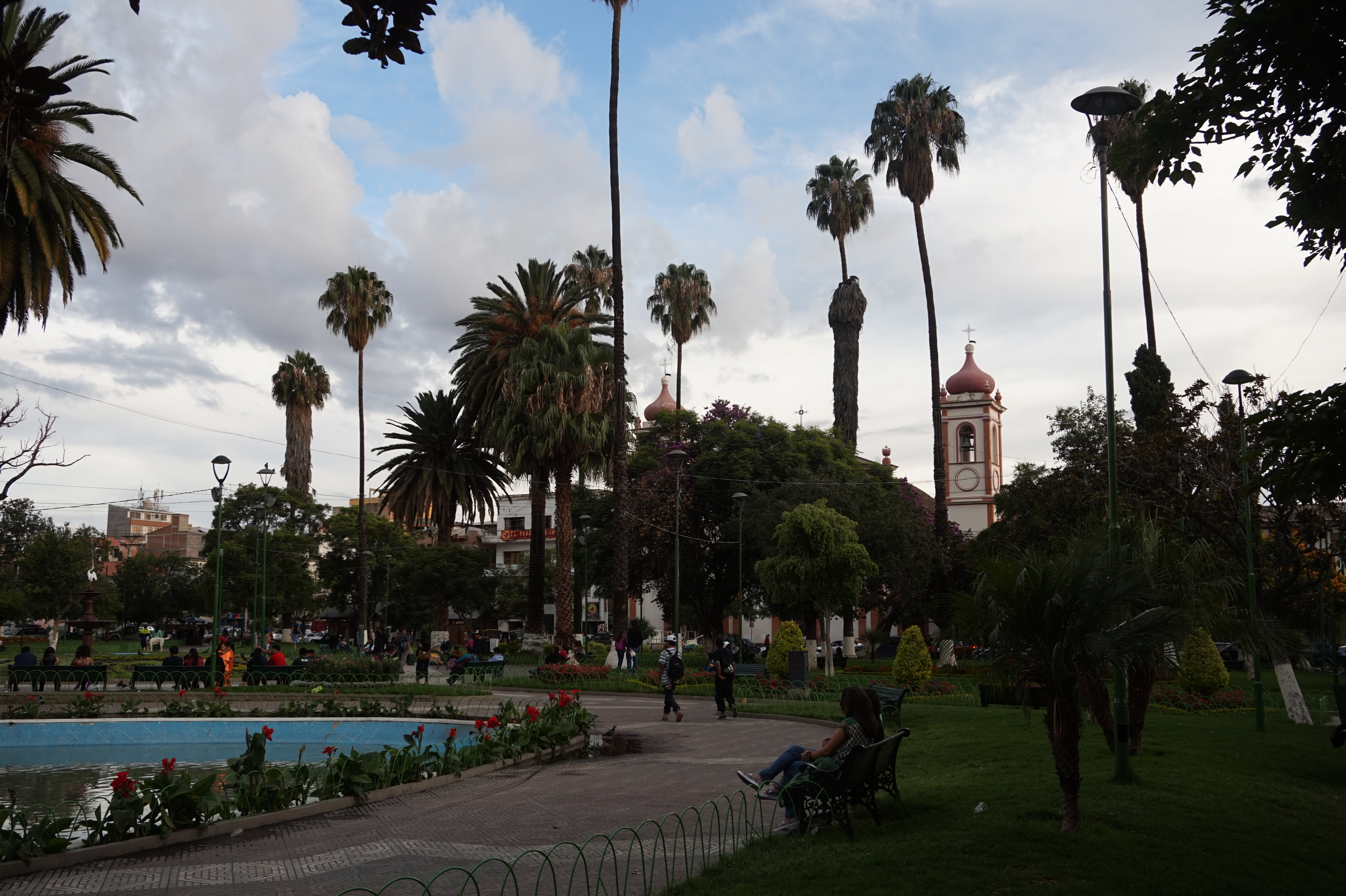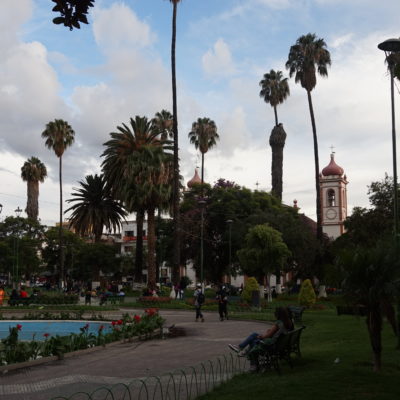 Après une nuit de plus dans un bus, nous arrivons à Cochabamba, malgré l’heure très matinale, le terminal est déjà en pleine activité et remplis de vie. Nous nous dirigeons gentiment vers un hostal que j’avais repéré sur internet la veille, qui évidemment… n’existait plus :-). Nous en trouvons un autre rapidement et comme nous n’avons qu’une journée dans la ville, je presse Aurélie pour aller visiter cette belle ville…. Il est presque 16h quand Aurélie se réveille (rien que ça…) donc autant vous dire qu’on ne verra pas grand-chose de la ville, si ce n’est sa magnifique place principale et ses alentours, son marché qui est un (si pas le plus) grand d’Amérique du sud. On aime dire qu’on reviendra pour par exemple aller voir le Cristo blanco (plus grand que celui de Rio de Janeiro au Brésil) ou encore le jardin botanique.