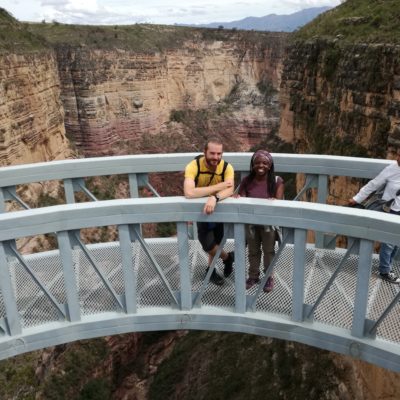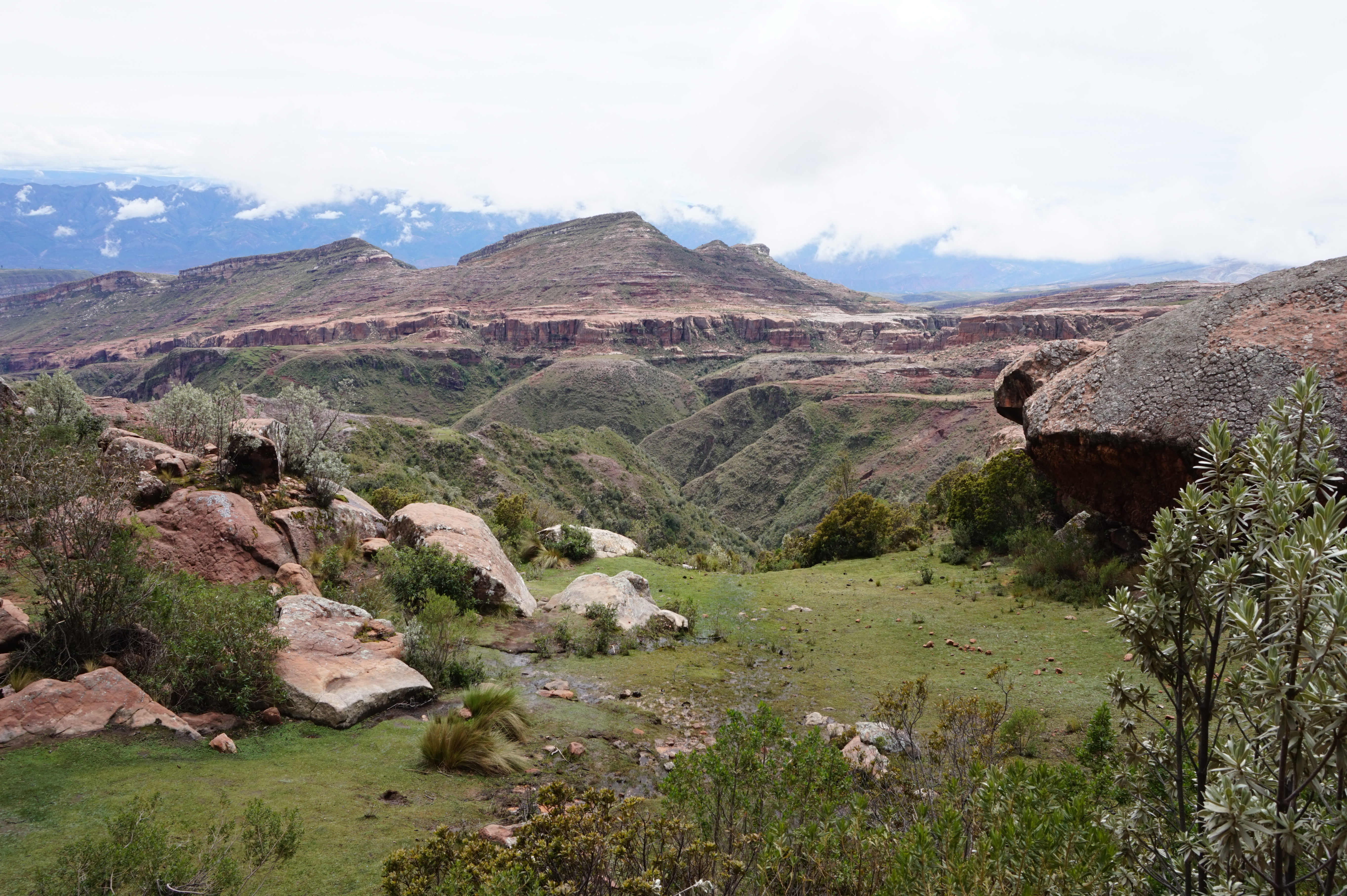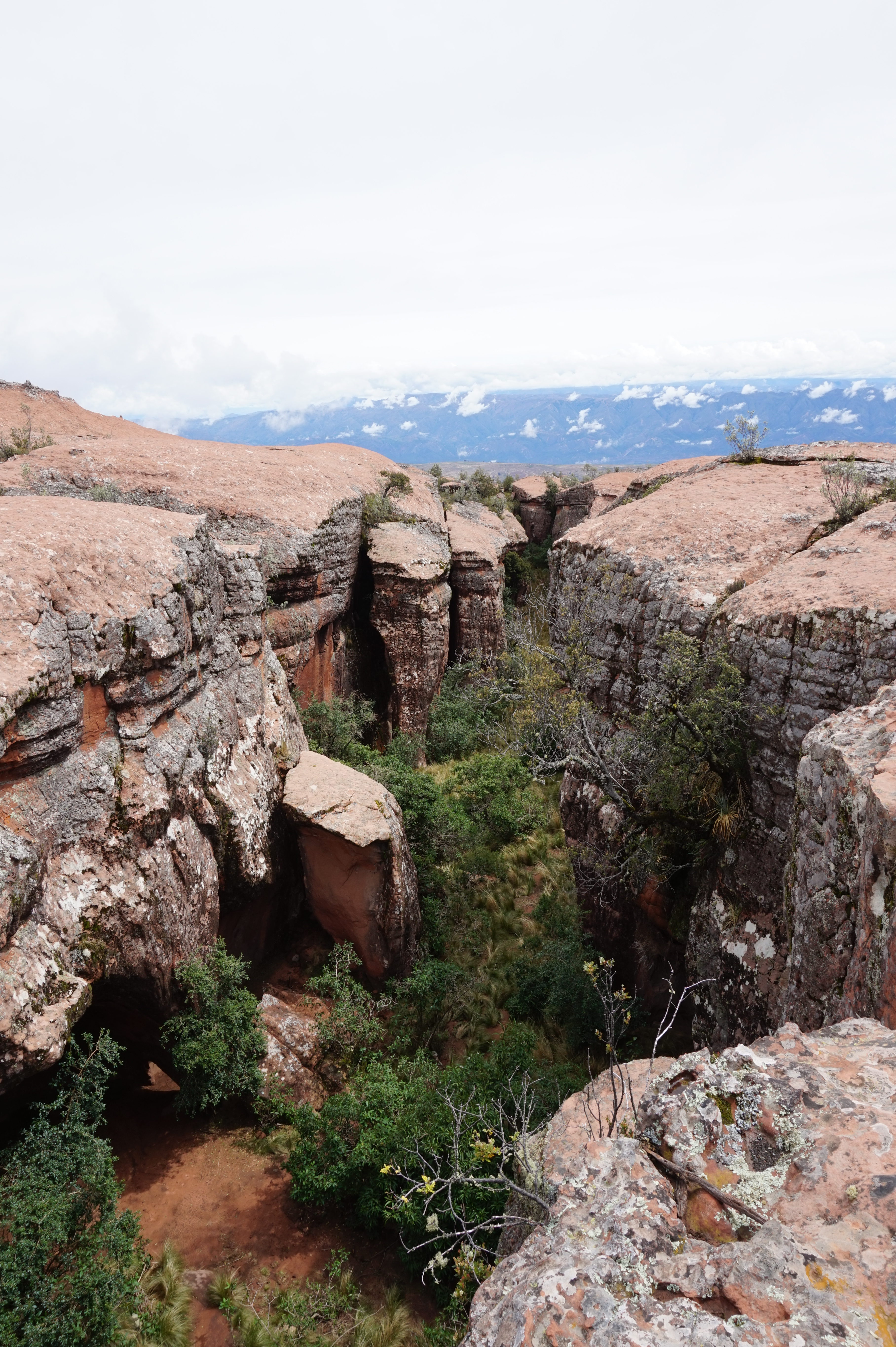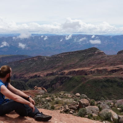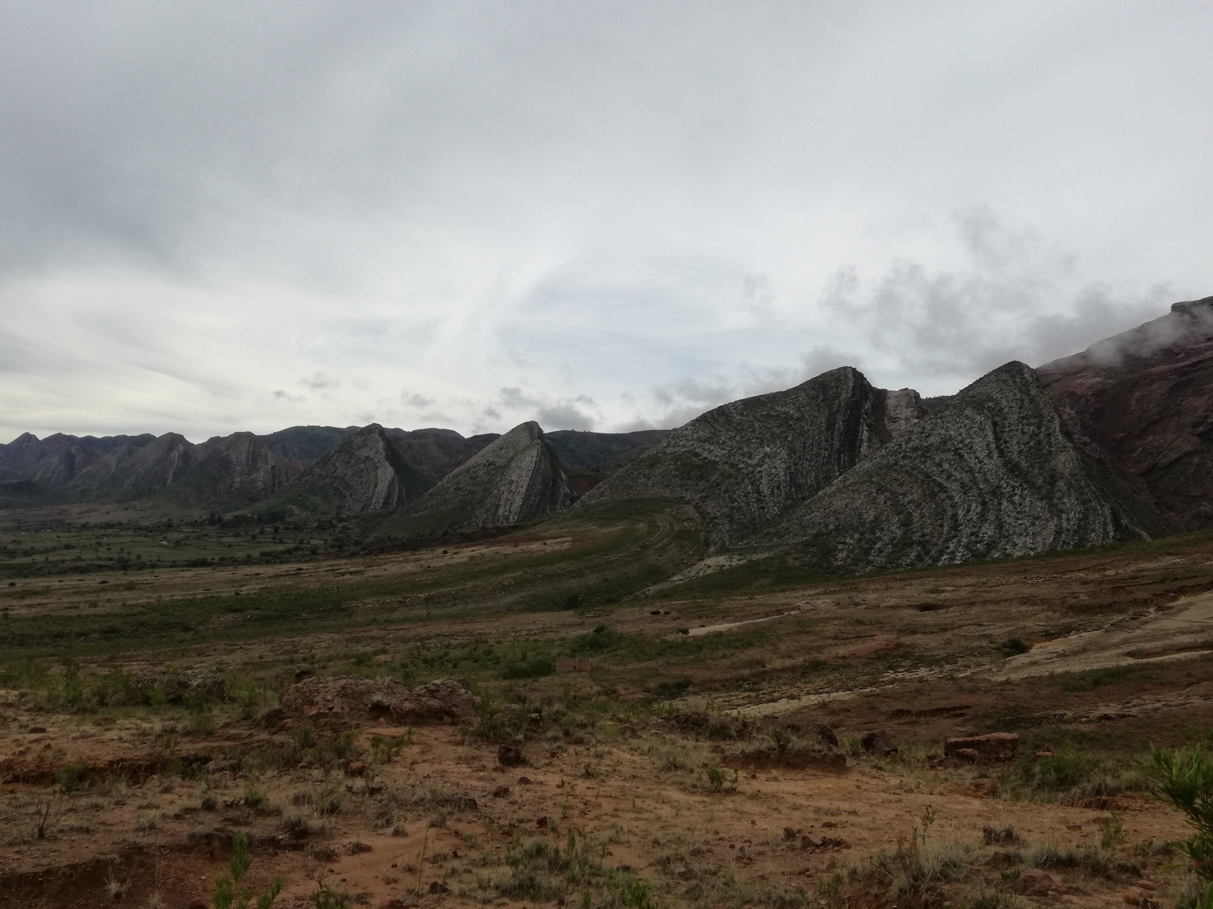Le lendemain, après un petit-déjeuner magnifiquement ridicule, nous nous dirigeons prendre un combi pour le parc national Torotoro (l’un des parcs nationaux les plus remarquables de Bolivie où l’on y trouve fossiles marins et empreintes de dinosaures dans des paysages montagneux) les combis pour le magnifique petit village de Torotoro ne partent que quand ils sont complets. Donc, nous voilà en route après deux heures d’attente, pour 5 heures de route sur des routes de merde mais avec des magnifiques paysages. 5 heures de route j’ai dis? Rajoutez une heure et demi de retard suite à un accident sur la route, j’allais oublier ce petit détail tellement c’est devenu normal pour nous :-))
