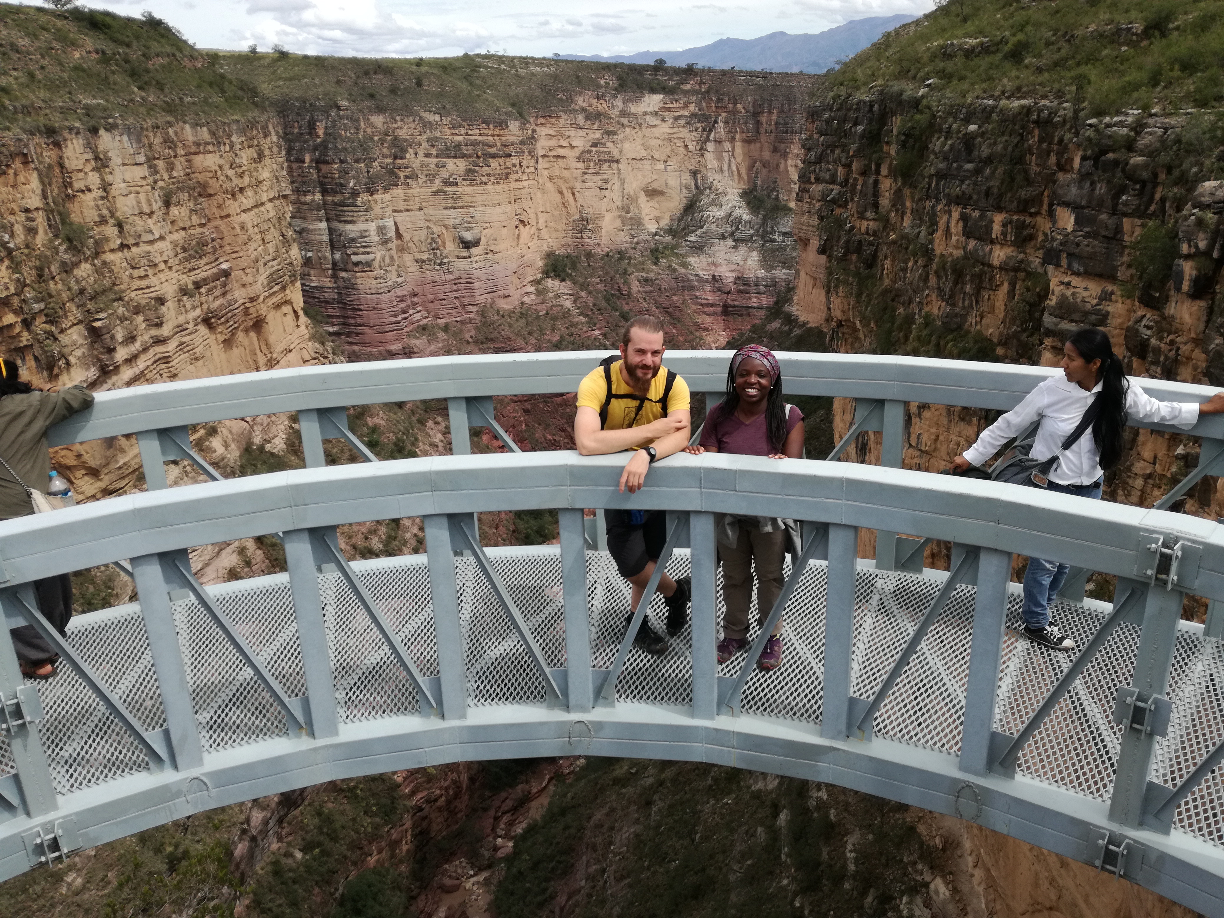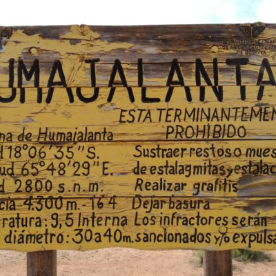 Nous y passerons 2 magnifiques journées et nous y rencontrerons des gens super sympathique. Ce n’est malheureusement pas gratuit (attention je n’ai pas dis que c’était cher), mais toutes les excursions nécessite un guide et de former au préalable, sur la place du village, un groupe de six personnes. Nous passerons les deux jours avec le même groupe, un Australien, un Bolivien (guide à la Paz) et deux sœurs dont une sœur de Cochabamba pour faire trois sorties aux alentours, la caverne (grotte) de Umajalanta et …( ?)… le premier jour, et les empreintes de dinosaures, le Cañón El Vergel accompagné d’une petite baignade au cascade le deuxième jour.