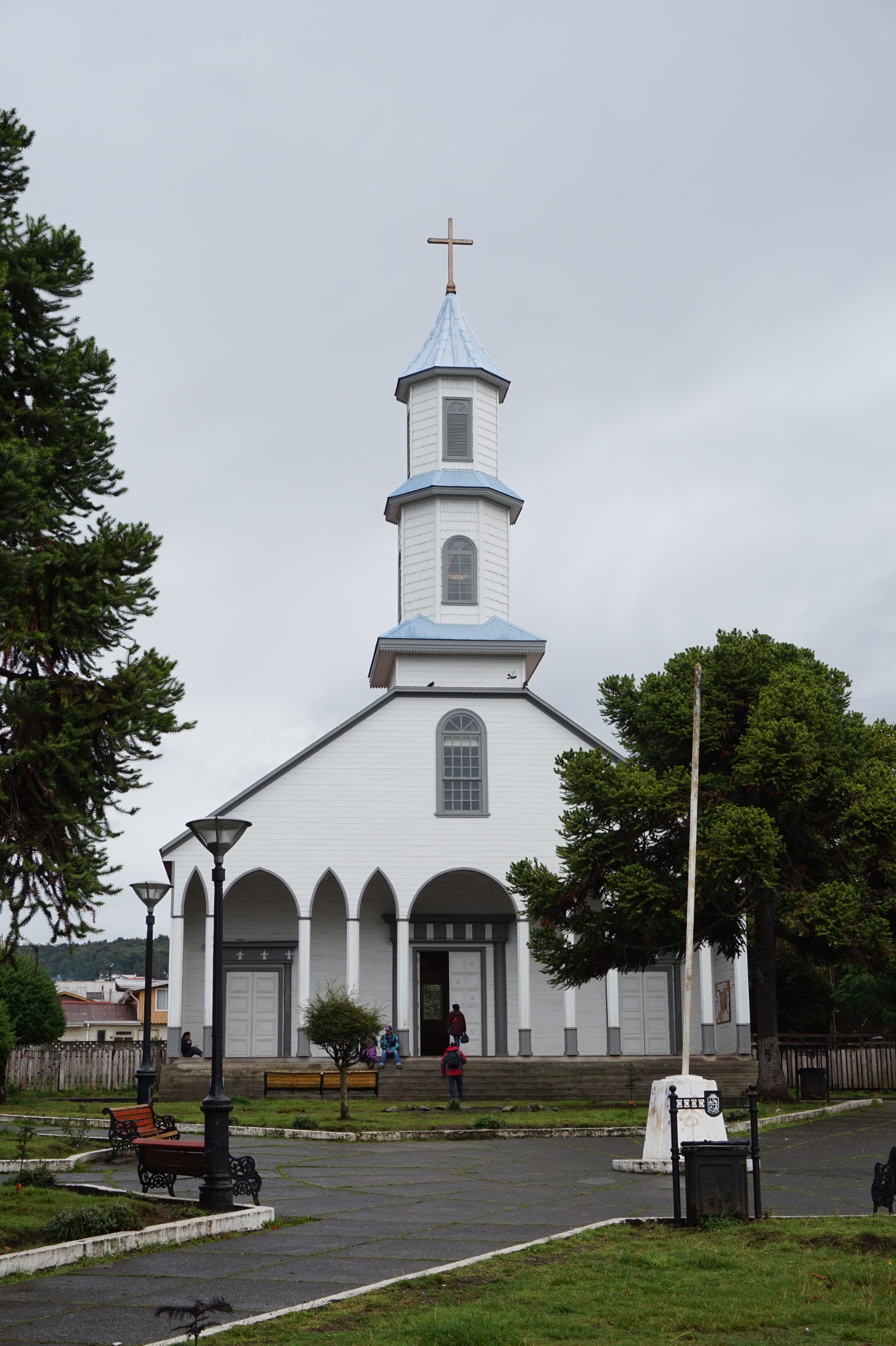 Chiloé, cinquième île d’Amérique du Sud de par sa taille, foyer d’un peuple de marins indépendants, nous à fort plus que ça soit par son architecture ( ses tejuelas (toitures typiques), ses palafitos (maison en bois sur pilotis) et ses églises en bois dont 16 classés au patrimoine mondial de l’Unesco),