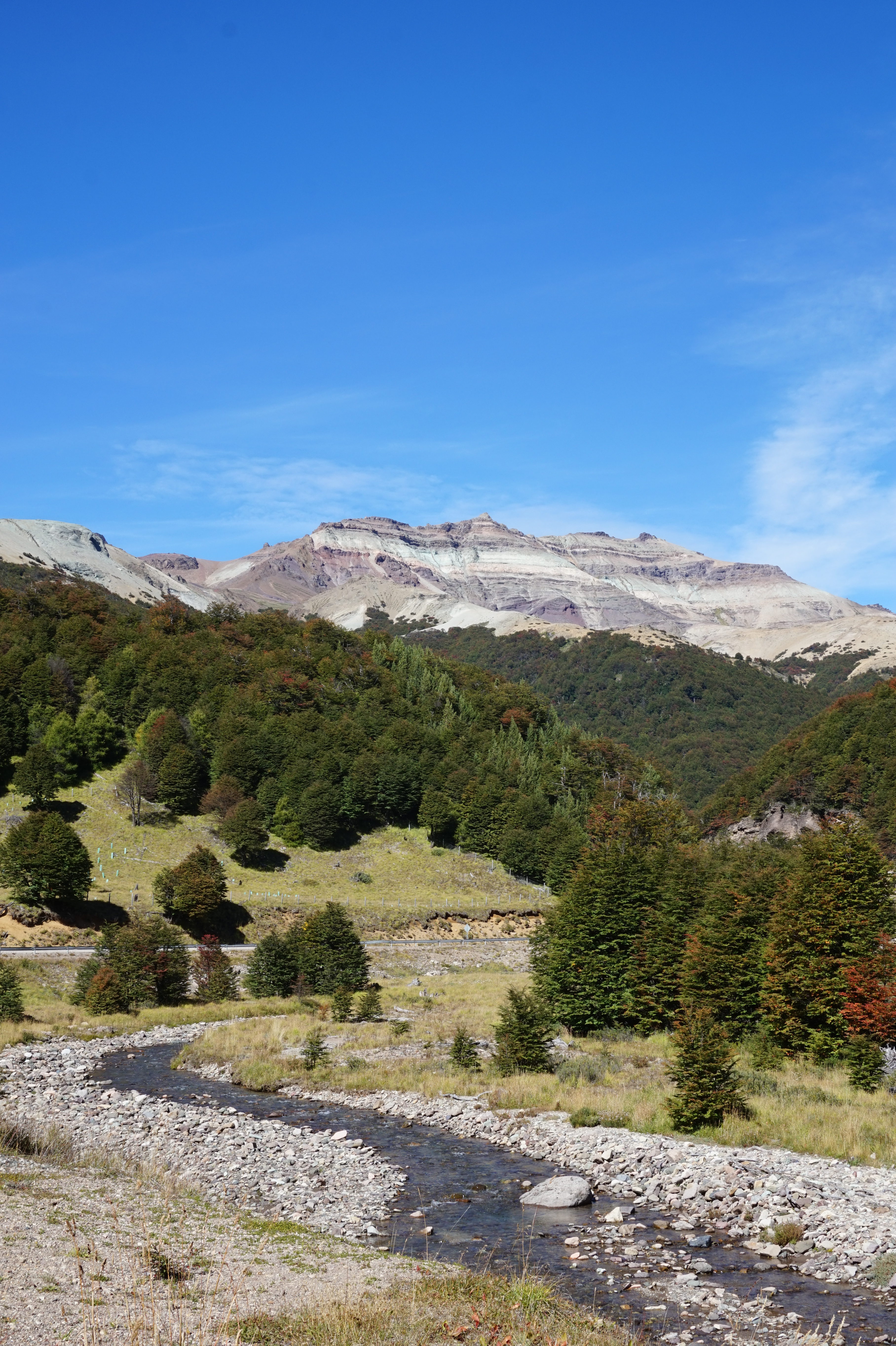 Notre premier arrêt se fera à la Reserva Nacional Cerro Castillo, nous y resterons une heure, le temps de manger et de faire un petit pipi 🙂 Nous passerons devant le Cerro Castillo (colline de 2700 m d’altitude qui est flanqué de trois grands glaciers sur son versant sud et qui a la forme d’un château).