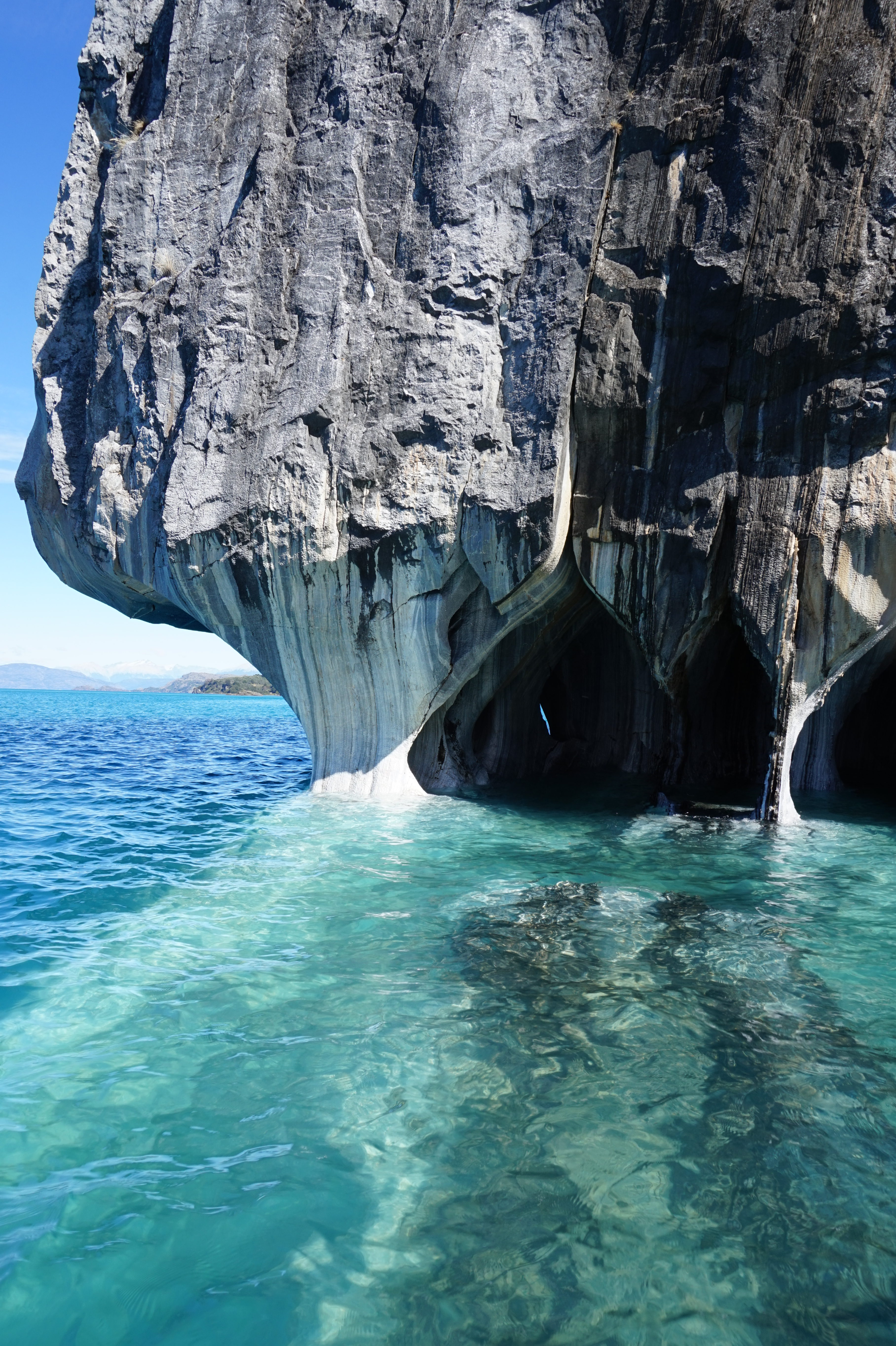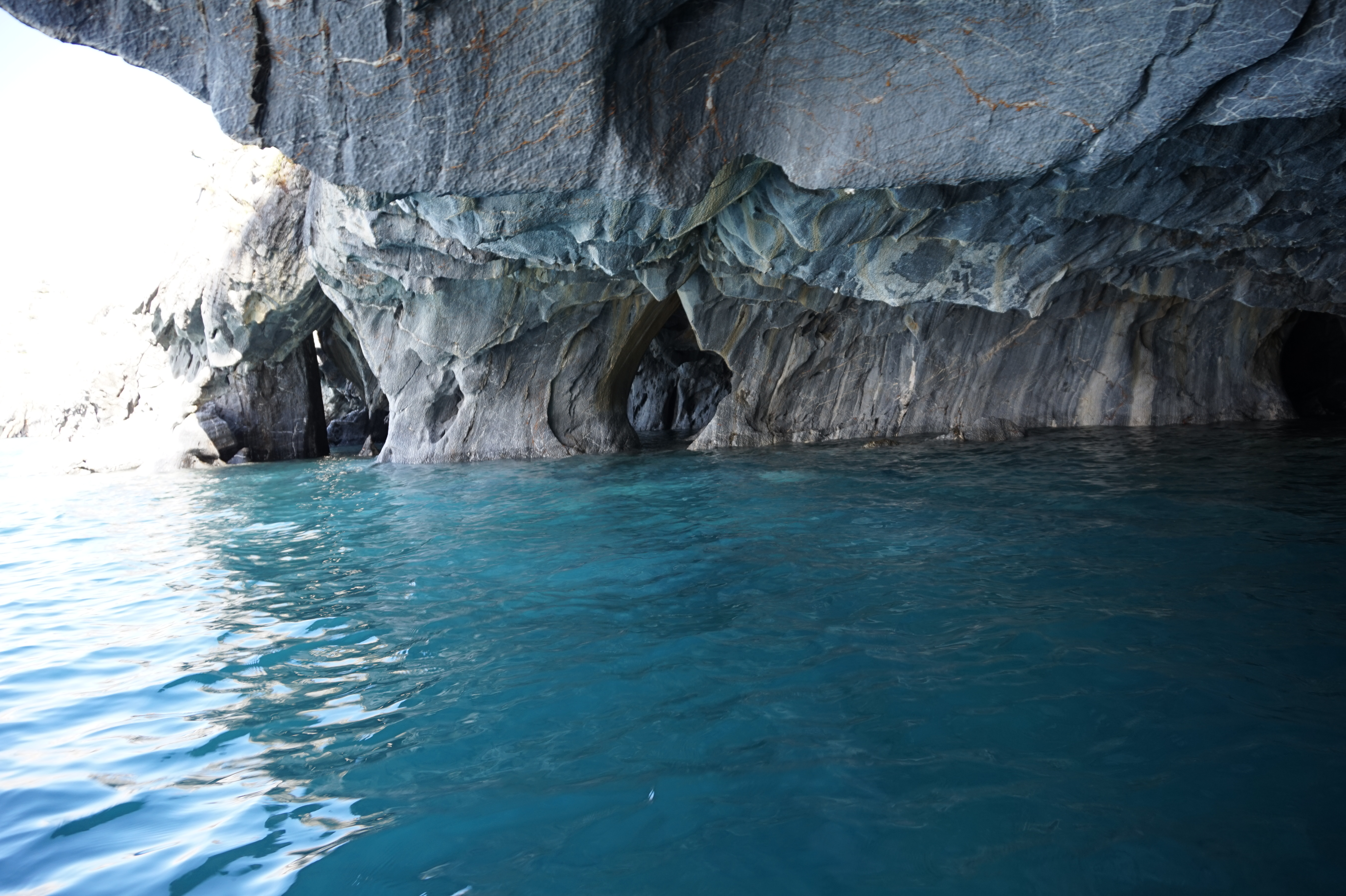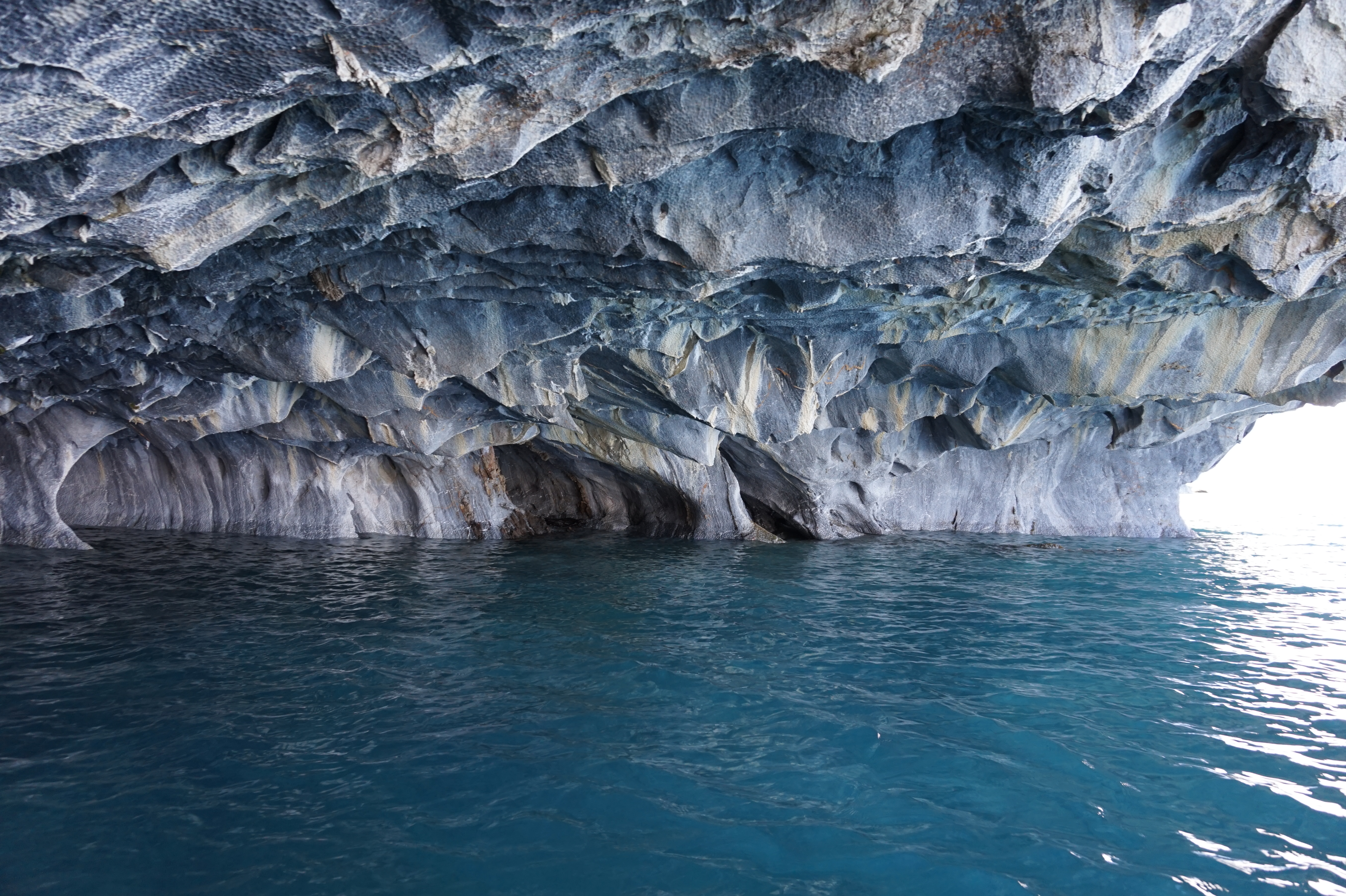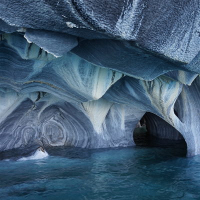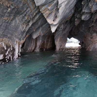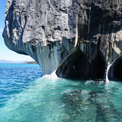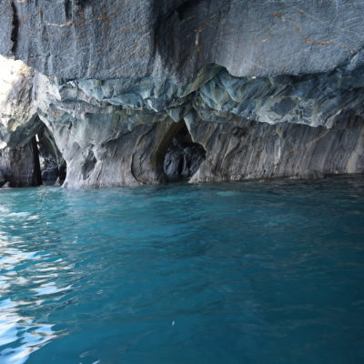 Après un bon petit-déjeuner et le rangement de nos affaires dans la voiture, nous prendrons la route direction Puerto Río tranquilo pour visiter la Capilla de Mármol (la chapelle de marbre), ce sont des rochers dont les bords ont été érodés par les eaux du lac General Carrera, ce qui a créé des formations (qui font penser à une chapelle) que l’on peut visiter à bord d’une petite embarcation.