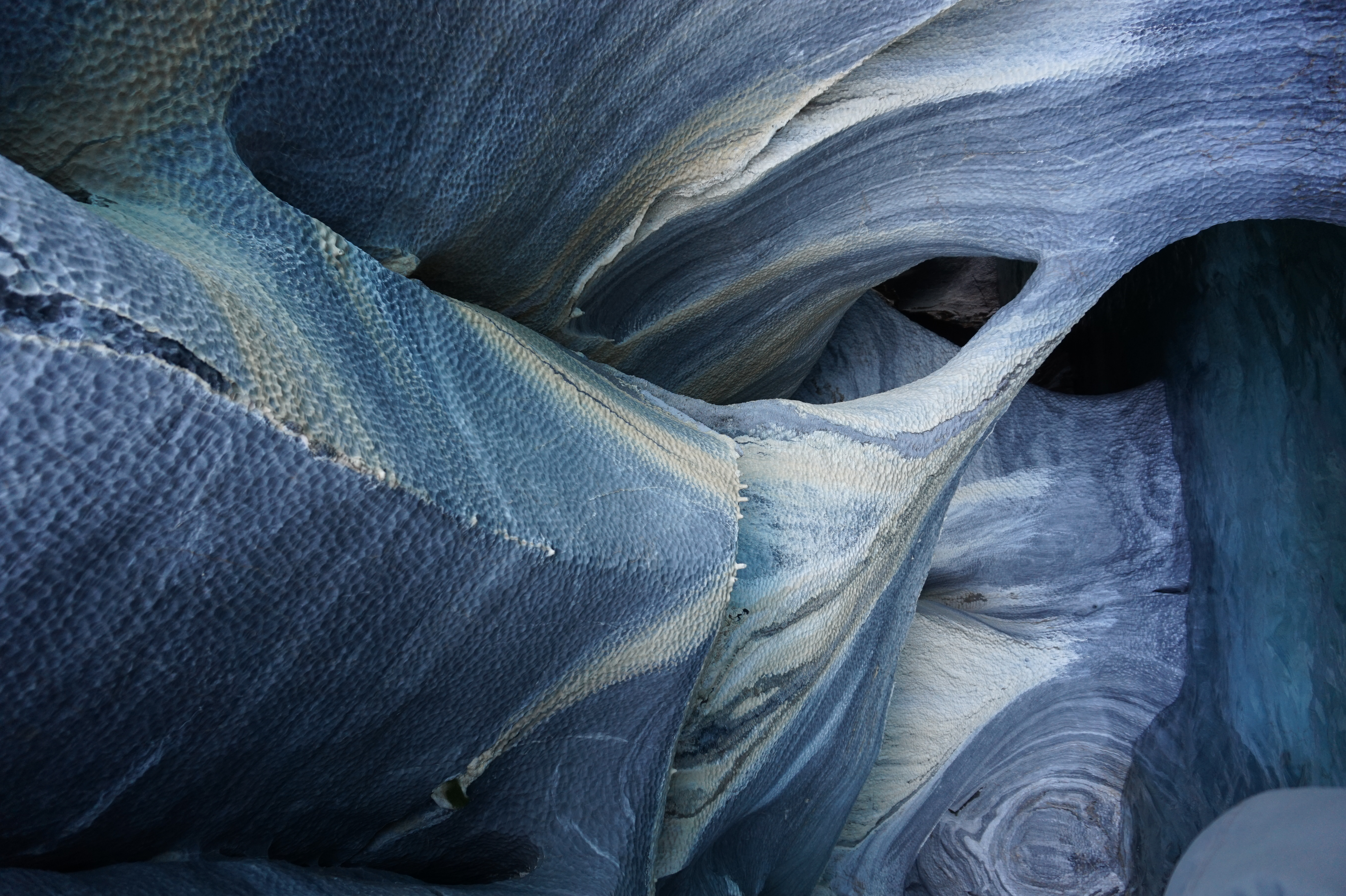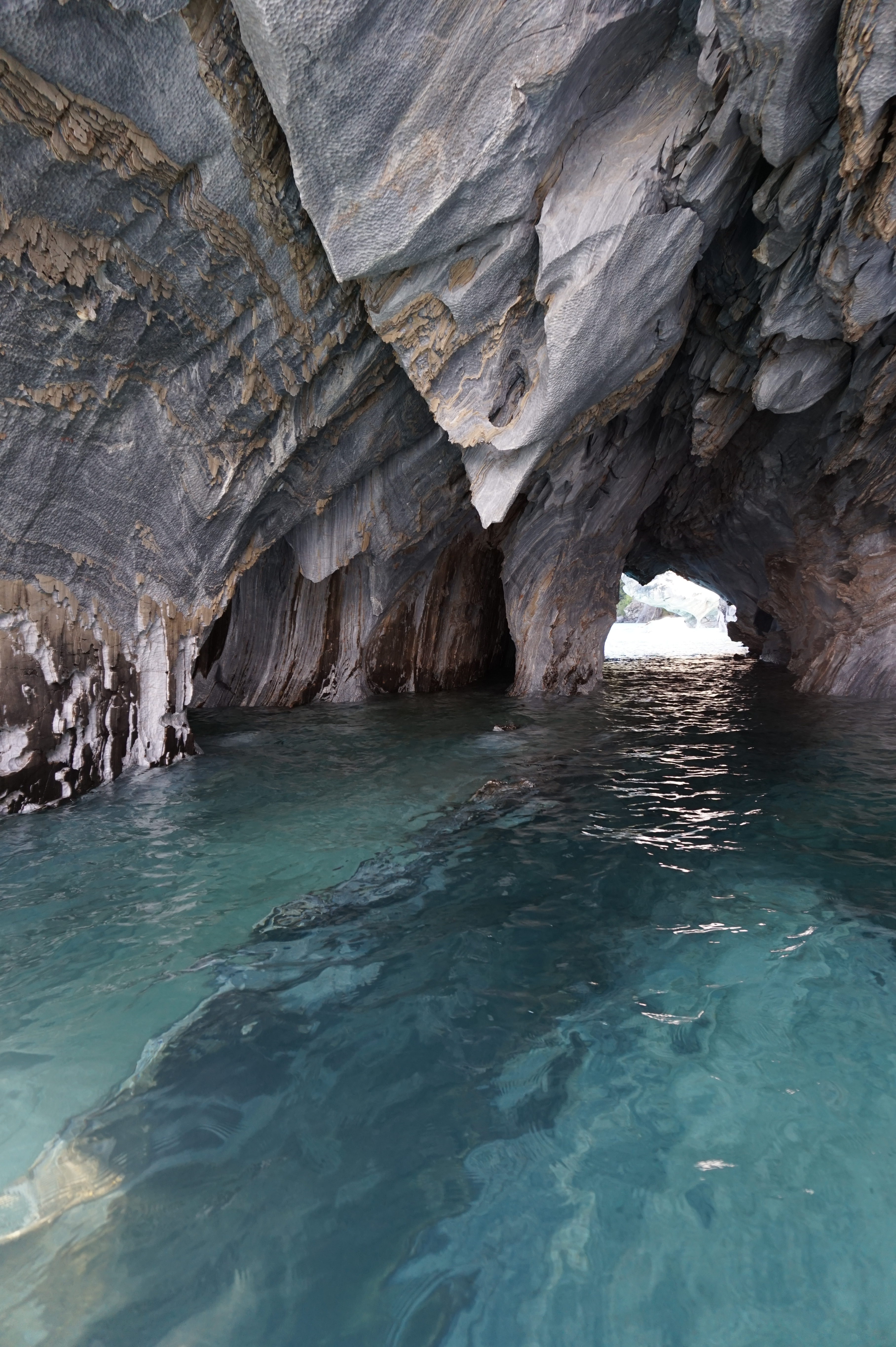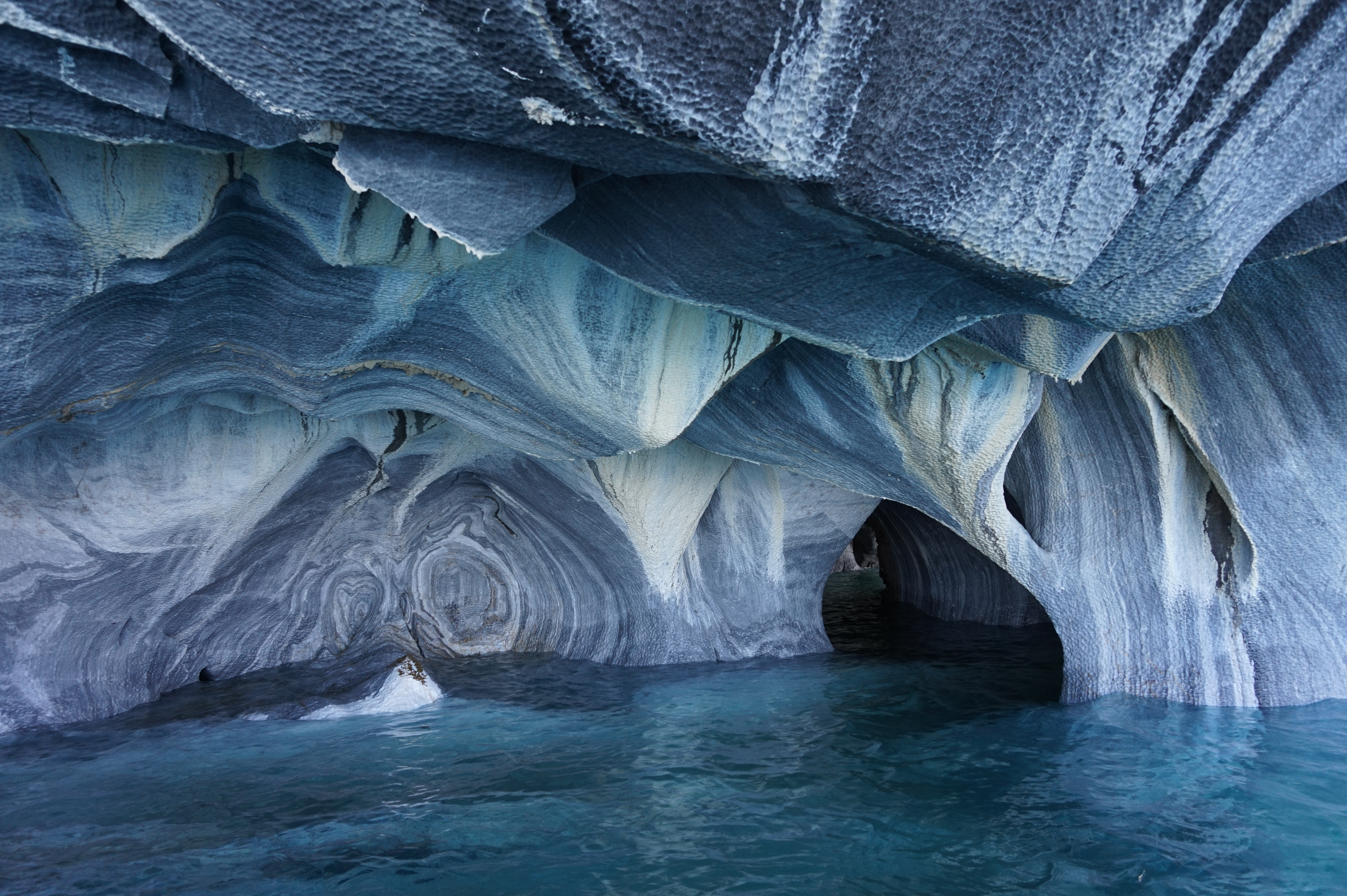 Après un bon petit-déjeuner et le rangement de nos affaires dans la voiture, nous prendrons la route direction Puerto Río tranquilo pour visiter la Capilla de Mármol (la chapelle de marbre), ce sont des rochers dont les bords ont été érodés par les eaux du lac General Carrera, ce qui a créé des formations (qui font penser à une chapelle) que l’on peut visiter à bord d’une petite embarcation.