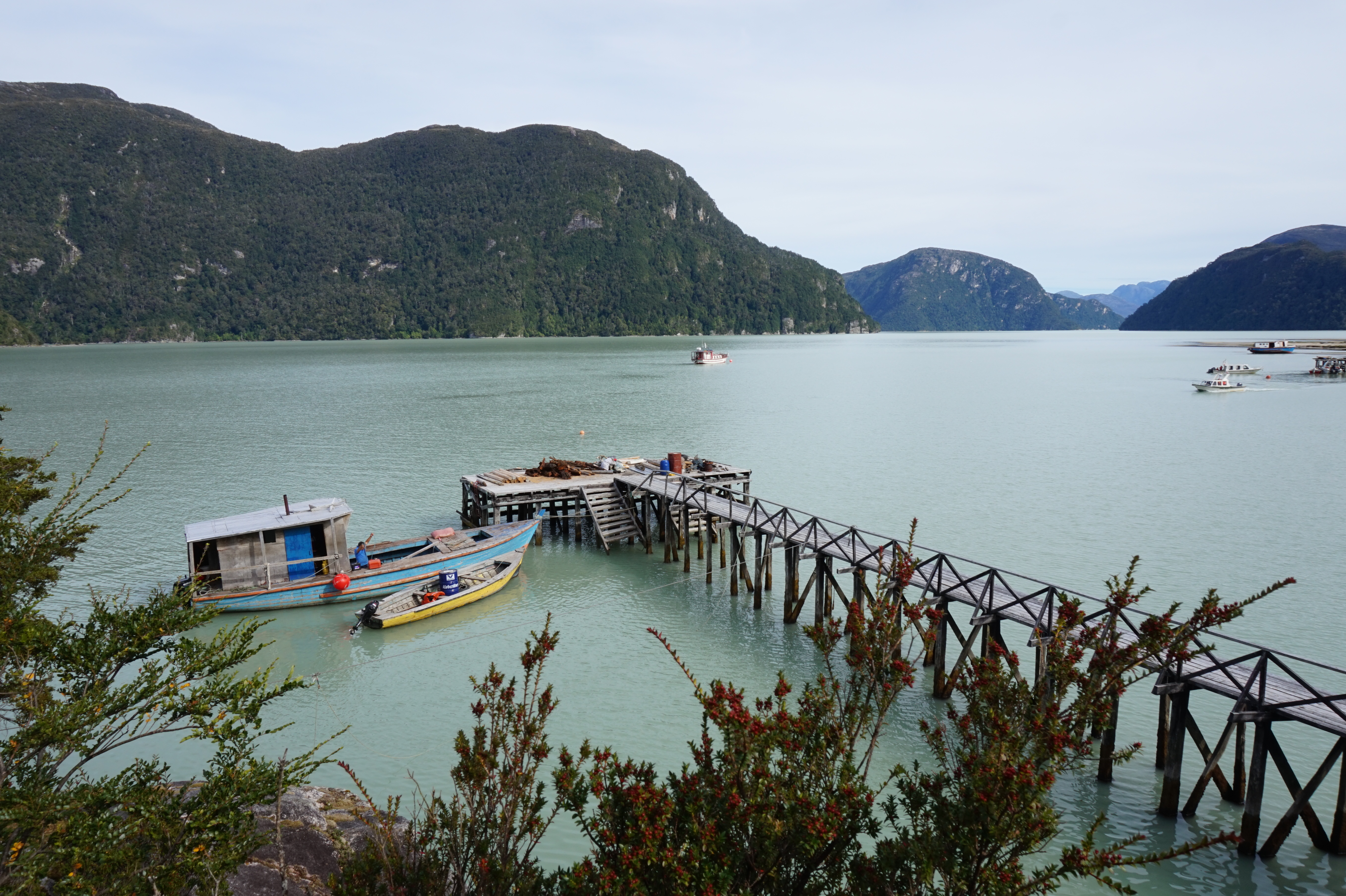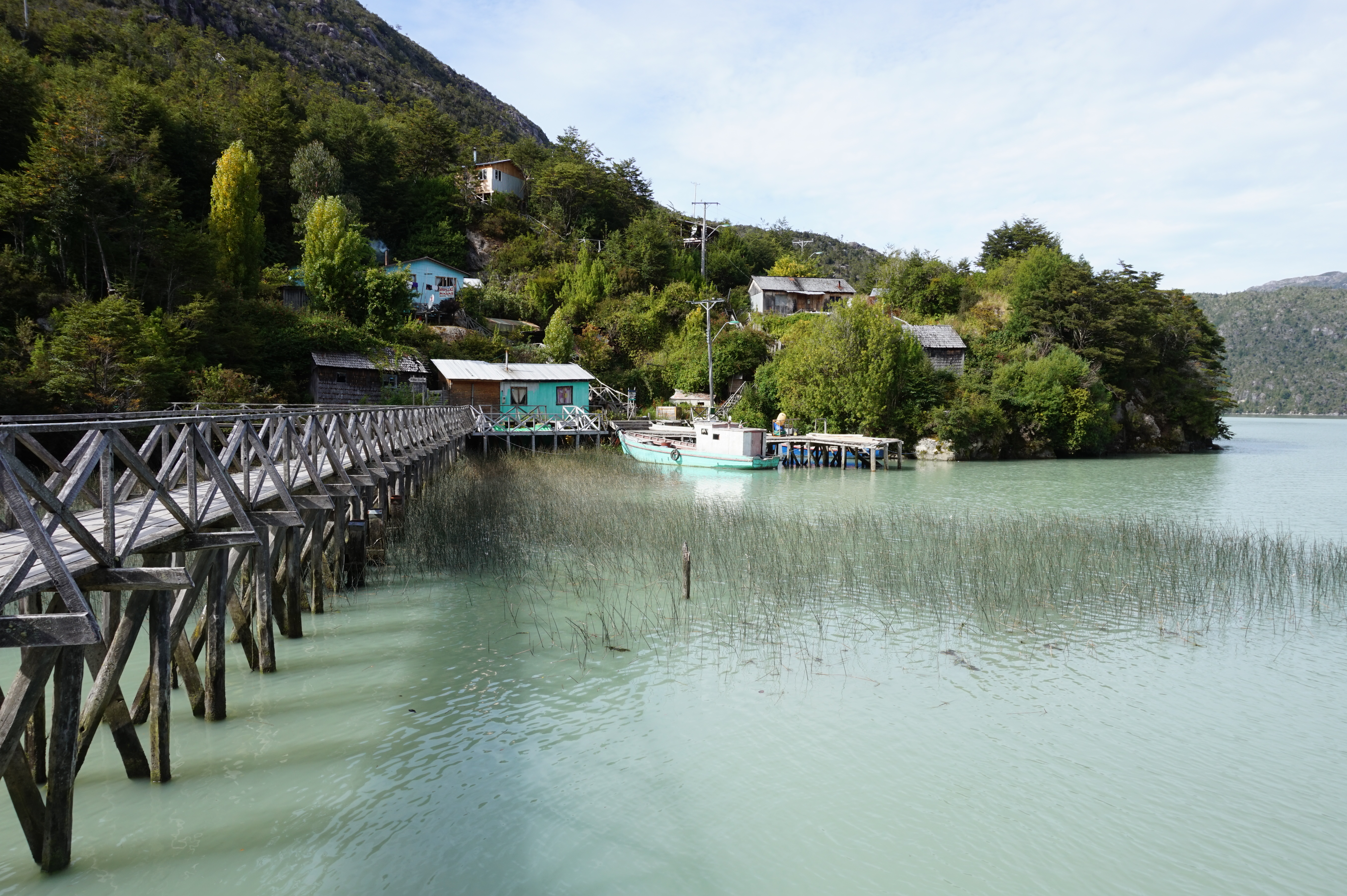Samedi nous visiterons le petit village de Caleta Tortel, village de pêcheurs classé au patrimoine national. Là-bas vous ne trouverez aucune route! Il faut empreinter les nombreuses passerelles en bois ou les bâteaux-taxis pour se déplacer. Ce village vaut vraiment le détour, rien que pour son mode de déplacement sur les passerelles en bois, sa tranquillité et les collines qui l’entourent, on a vraiment bien aimé!