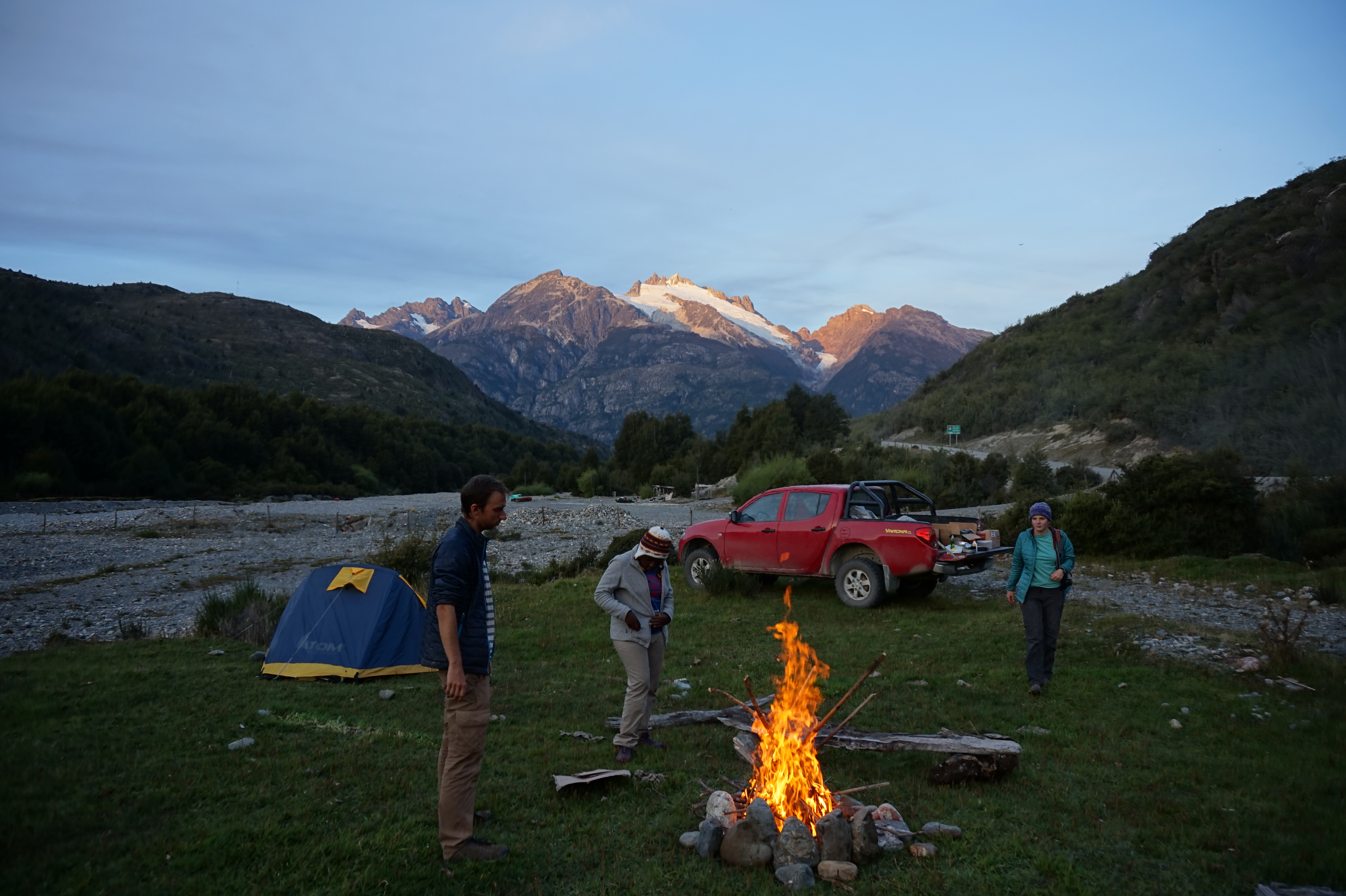 Après ça c’est reparti pour un tour en voiture! Cette fois on est à la recherche d’un endroit pour faire du camping sauvage, nous trouverons un petit coin sympa un peu à l’écart de la route, où passe un petit ruisseau et où les précédents campeurs avaient fabriqués un banc avec des morceaux de bois. On dirait que tout avait été préparé pour nous accueillir 🙂 Nous passerons une chouette soirée autour du feu, à bavarder et à contempler le ciel étoilé 🙂 Dur dur le réveil le lendemain, la nuit a été froide et humide, pas facile de trouver le sommeil (en tout cas pour moi)!