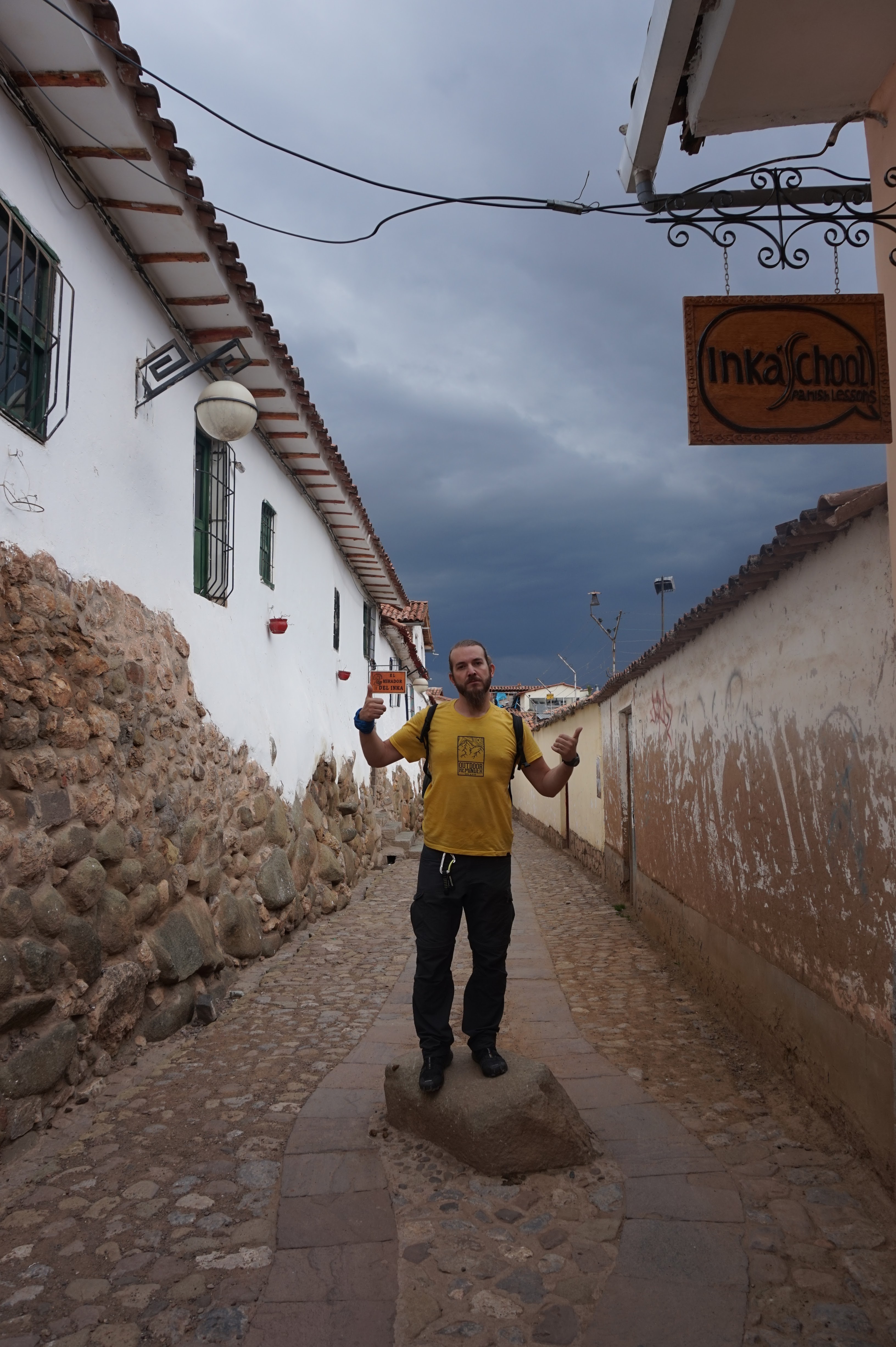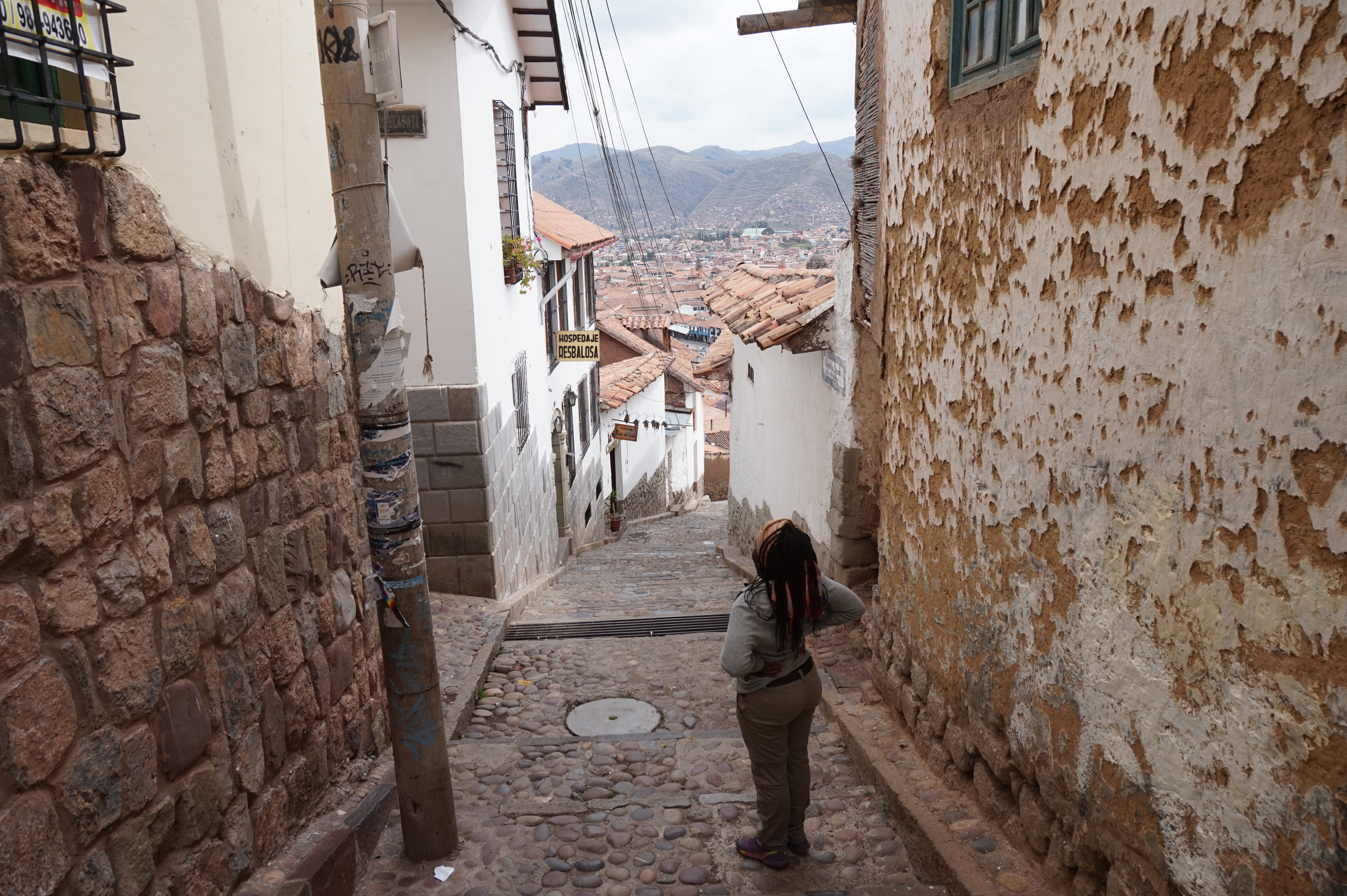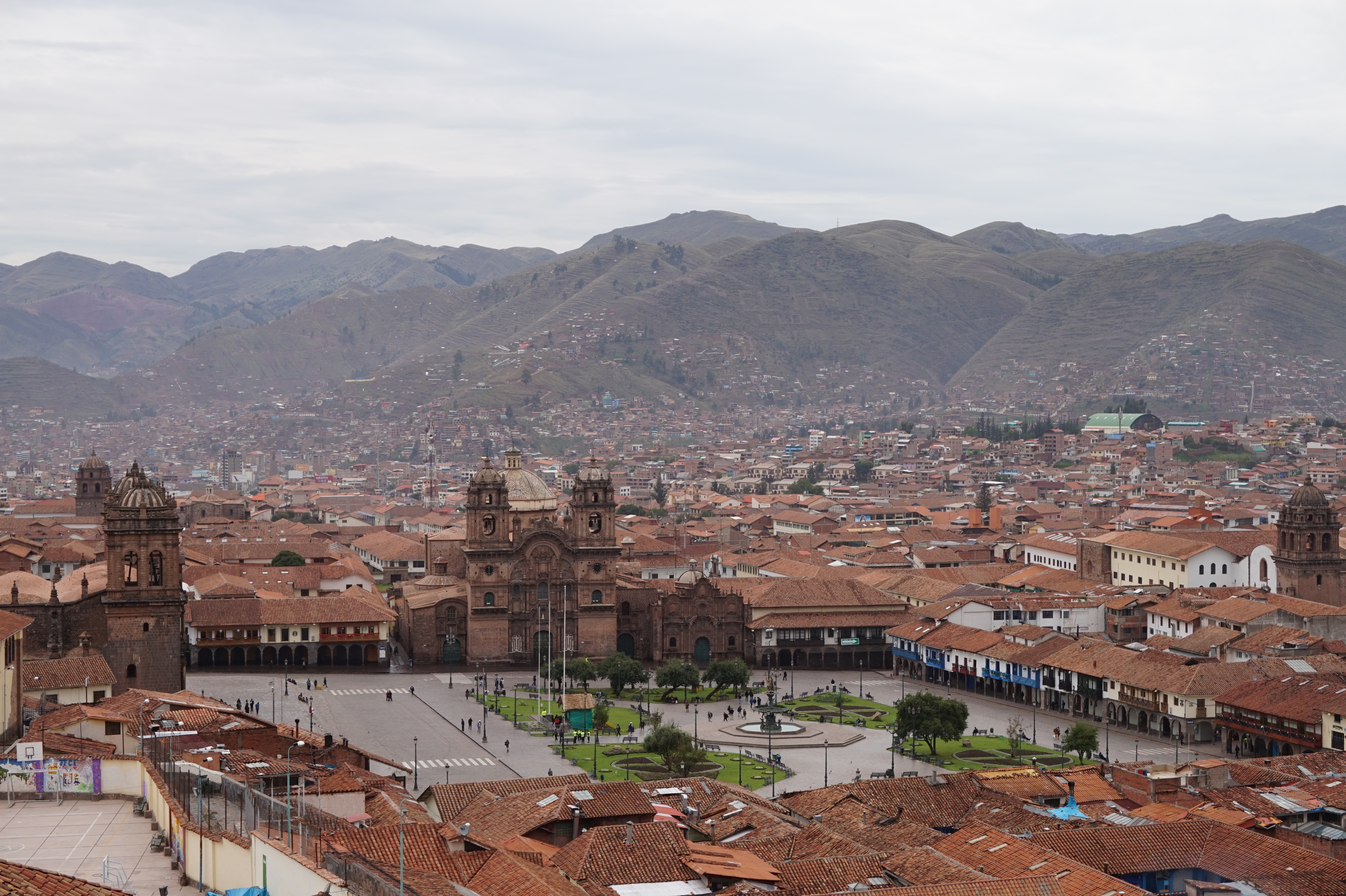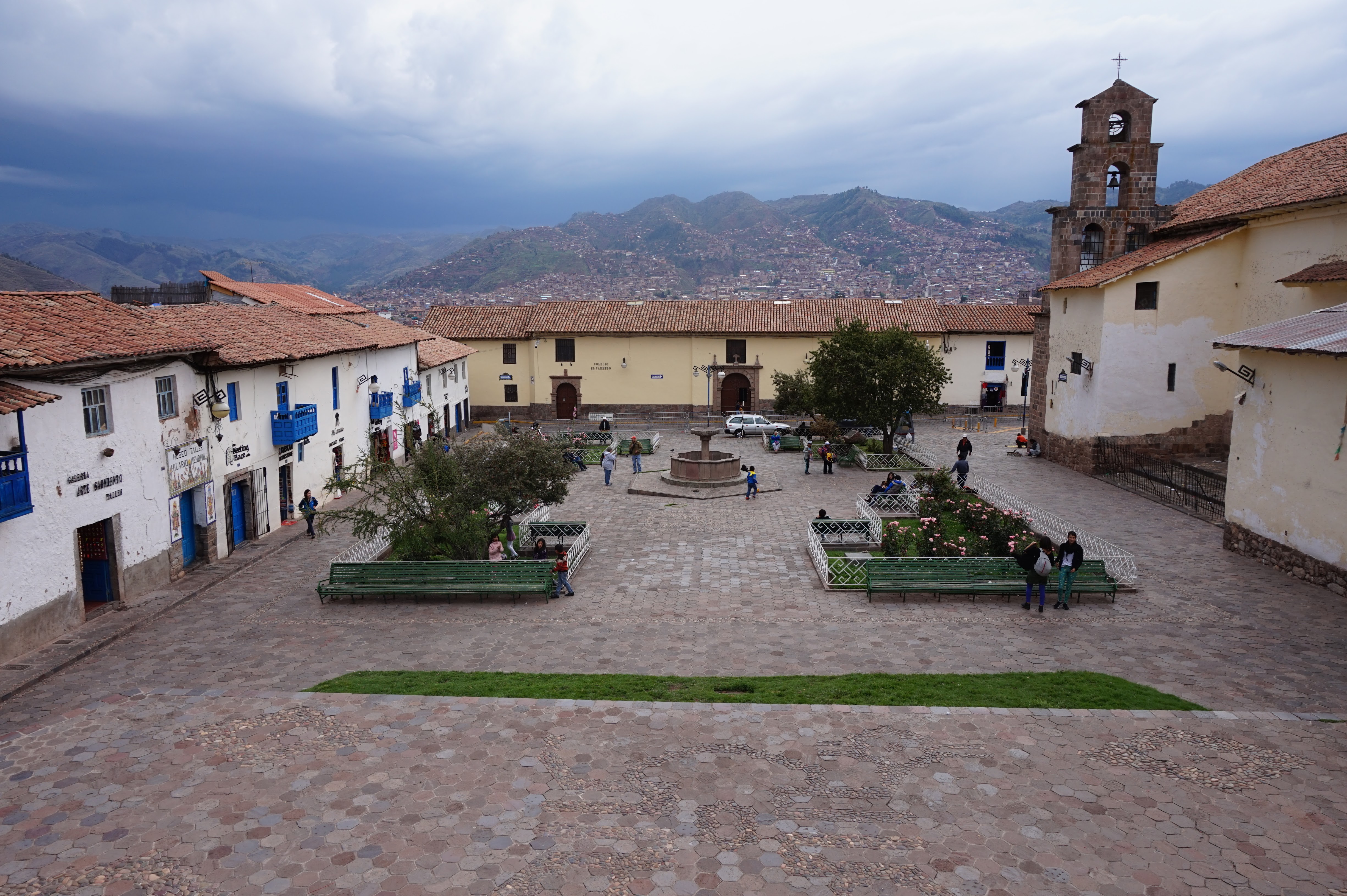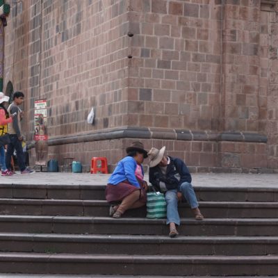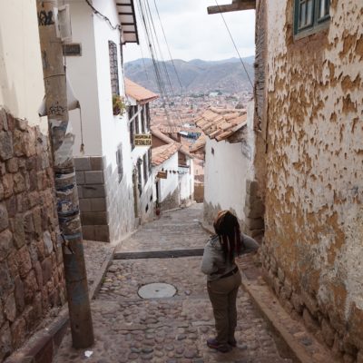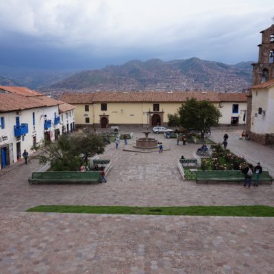 …. La vue, la vue de la terrasse était bien 🙂 Bon son emplacement aussi mais pour le reste j’aime autant vous dire qu’on y était que pour dormir et que même son petit-déjeuner compris dans le prix, on ne l’a mangé que deux fois… Et on n’est pourtant pas exigeant (en Belgique peut-être oui, un peu, mais ici croyez moi je m’y suis adapté). Quand je pensais à Cusco, j’imaginais que ce n’était qu’une étape pour aller au site du Machupicchu, mais je me trompais royalement. Cusco est un ville magnifique, comme beaucoup d’autres je vous l’accorde, qui mérite que l’on s’y attarde un peu (à condition de faire abstraction des nombreux rabatteurs en tout genre, vous proposant excursions de rêve, restaurants touristiques, massages, ou encore leurs propres créations qui vont des bijoux, aux habits, en passant par leurs dessins bizarrement tous identiques :-)) pour la ville en elle-même et pour ses alentours. Après un jour de découverte de la ville, de la Plaza de Armas au Cristo Blanco surplombant la ville en passant par d’autres places comme la Plaza Regocijo ou encore la Plaza San Francisco et son église (la seule à l’entrée encore gratuite), l’église et le couvent de Santa Clara, le mercado San Pedro, le palais de justice, l’allée Loreto (allée bordée de murs incas) avant de remonter par des petites rues pavées jusqu’au quartier de San Blas,…etc…