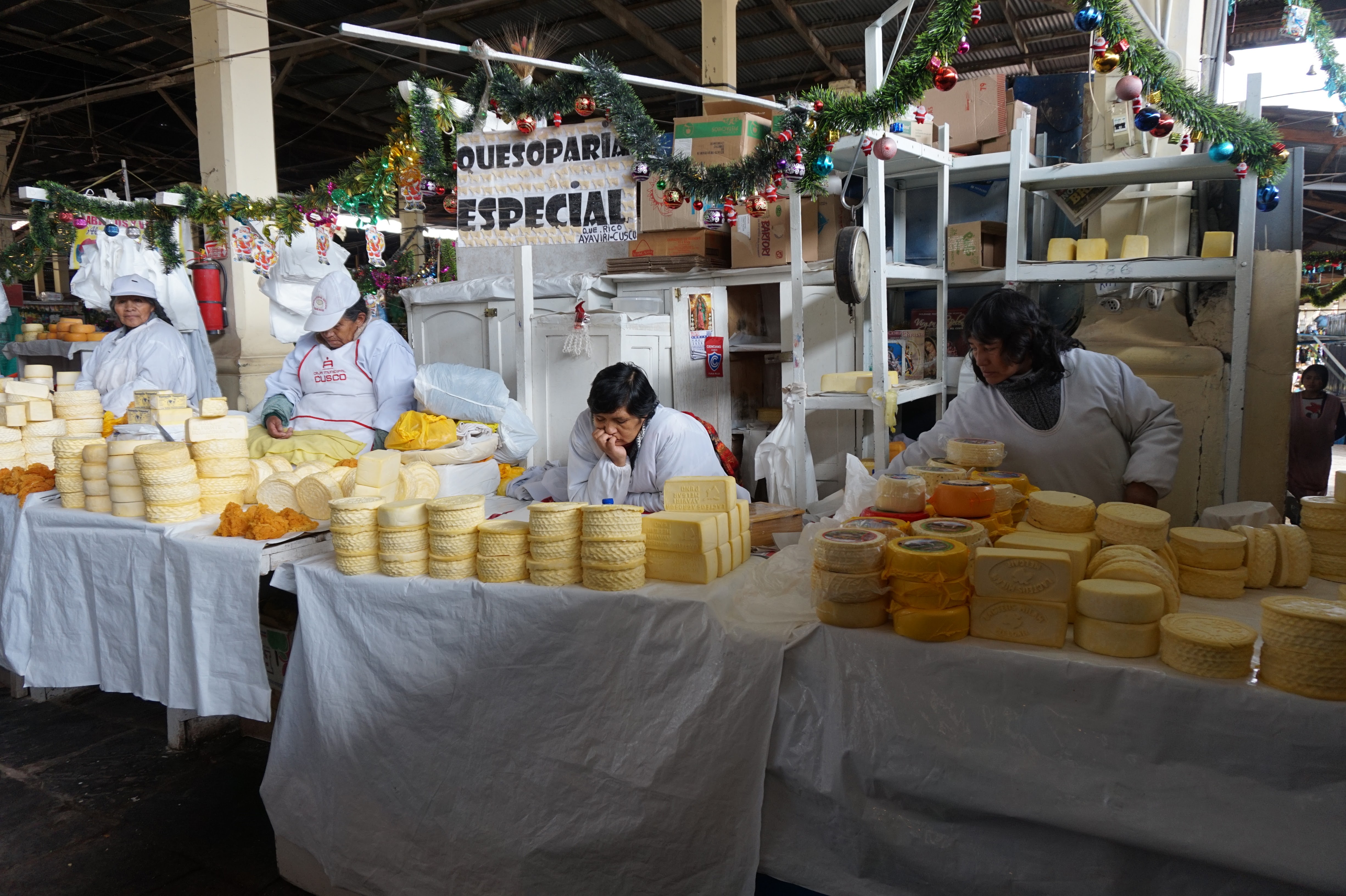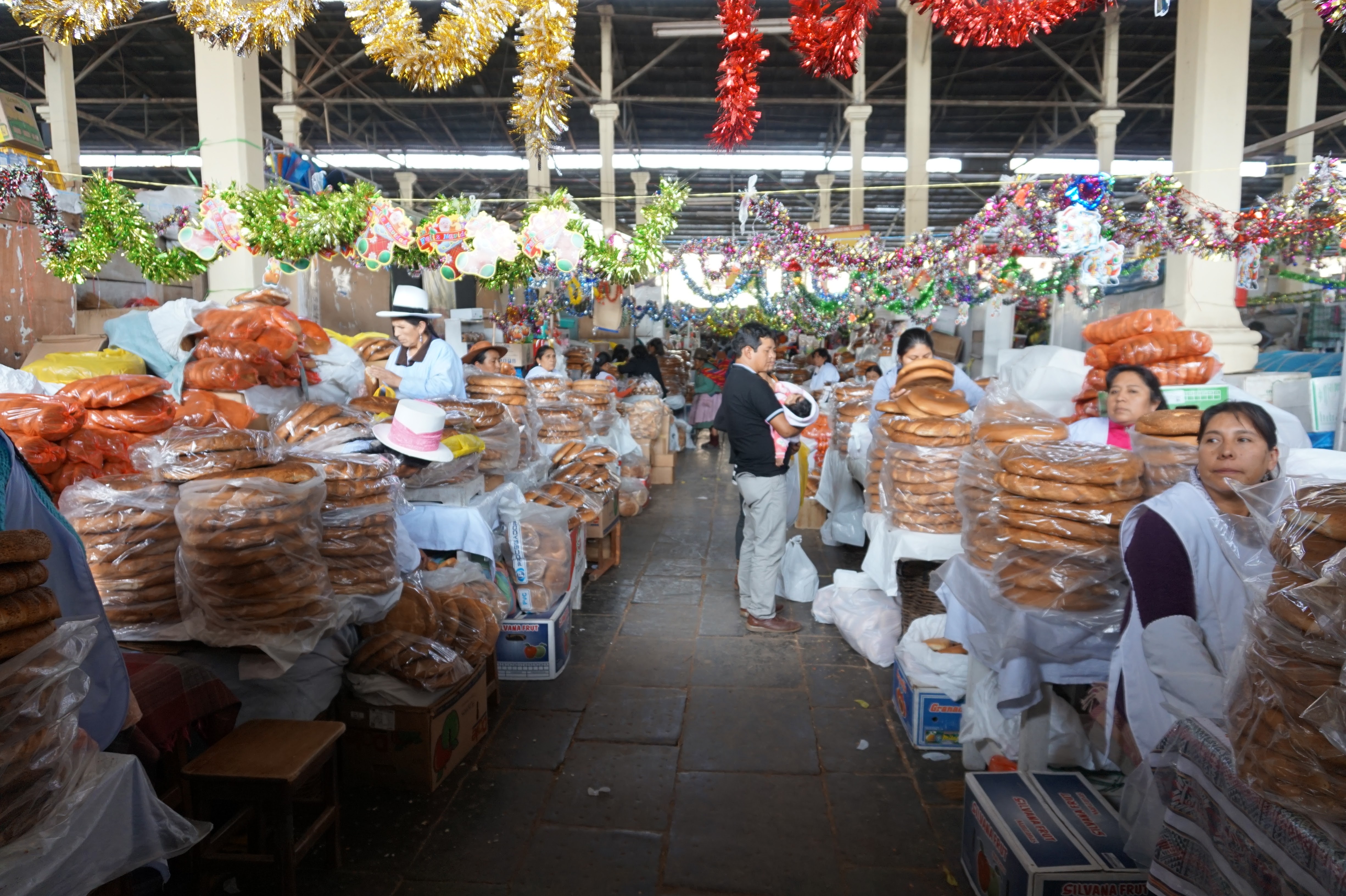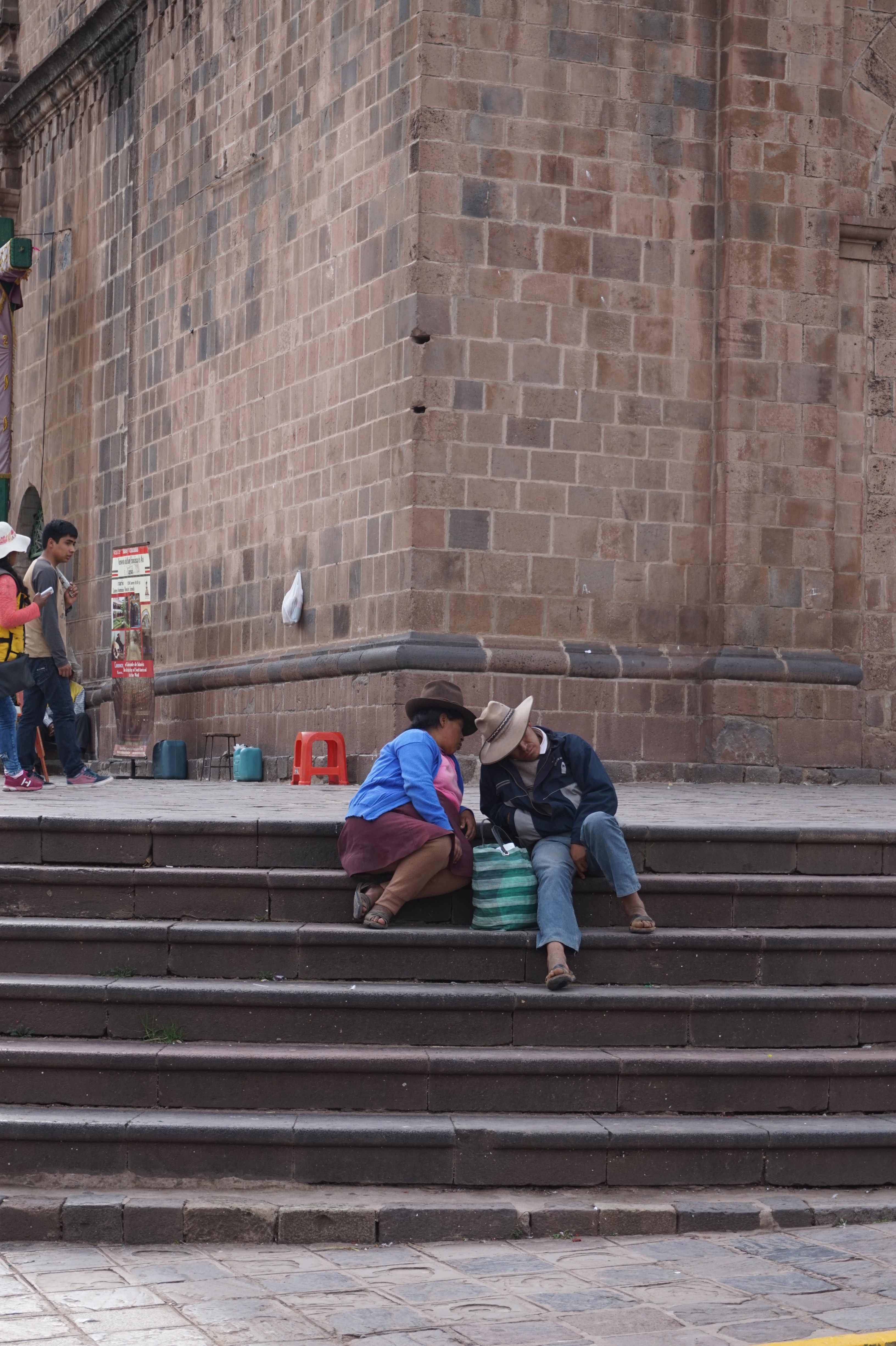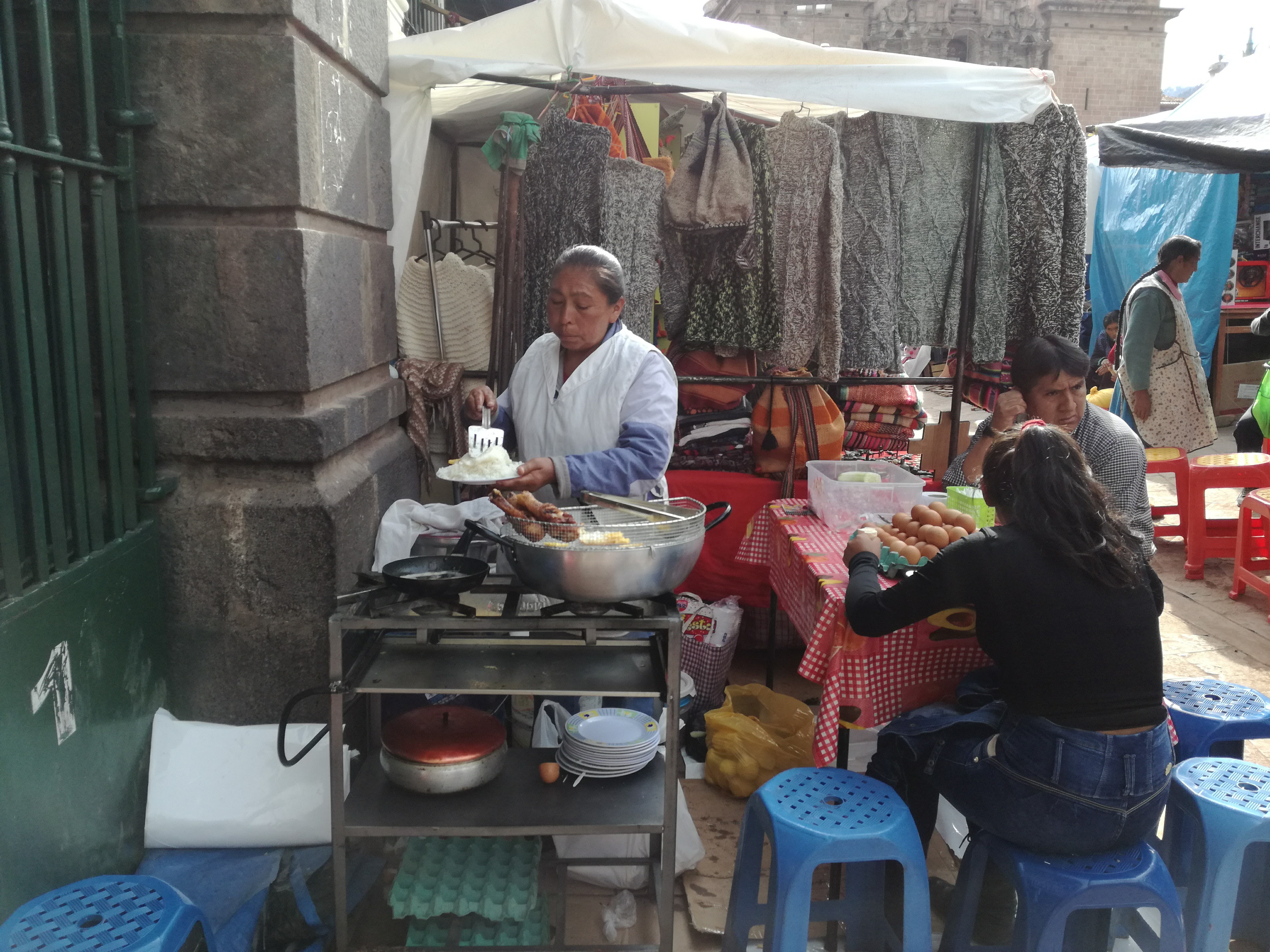…. La vue, la vue de la terrasse était bien 🙂 Bon son emplacement aussi mais pour le reste j’aime autant vous dire qu’on y était que pour dormir et que même son petit-déjeuner compris dans le prix, on ne l’a mangé que deux fois… Et on n’est pourtant pas exigeant (en Belgique peut-être oui, un peu, mais ici croyez moi je m’y suis adapté). Quand je pensais à Cusco, j’imaginais que ce n’était qu’une étape pour aller au site du Machupicchu, mais je me trompais royalement. Cusco est un ville magnifique, comme beaucoup d’autres je vous l’accorde, qui mérite que l’on s’y attarde un peu (à condition de faire abstraction des nombreux rabatteurs en tout genre, vous proposant excursions de rêve, restaurants touristiques, massages, ou encore leurs propres créations qui vont des bijoux, aux habits, en passant par leurs dessins bizarrement tous identiques :-)) pour la ville en elle-même et pour ses alentours. Après un jour de découverte de la ville, de la Plaza de Armas au Cristo Blanco surplombant la ville en passant par d’autres places comme la Plaza Regocijo ou encore la Plaza San Francisco et son église (la seule à l’entrée encore gratuite), l’église et le couvent de Santa Clara, le mercado San Pedro, le palais de justice, l’allée Loreto (allée bordée de murs incas) avant de remonter par des petites rues pavées jusqu’au quartier de San Blas,…etc…