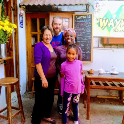 C’est aussi ce jour que nous avons découvert ce petit restaurant familial qui propose également des chambres et une superbe bonne cuisine, autant vous dire qu’en plus de bien manger 🙂 nous avons bien sympathisés avec la gérante et sa petite fille (la seule métisse de Cusco) qui nous ont appris à jouer au sapo (crapaud), un vieux jeu d’adresse qui occupe les habitants dans les bars. Si vous passez par là où connaissez quelqu’un qui y passe n’hésitez pas à lui recommander l’adresse et remettez lui nos amitiés (restaurant Waykiss, call Choquechaca 229 Int. / tel: 993094863).