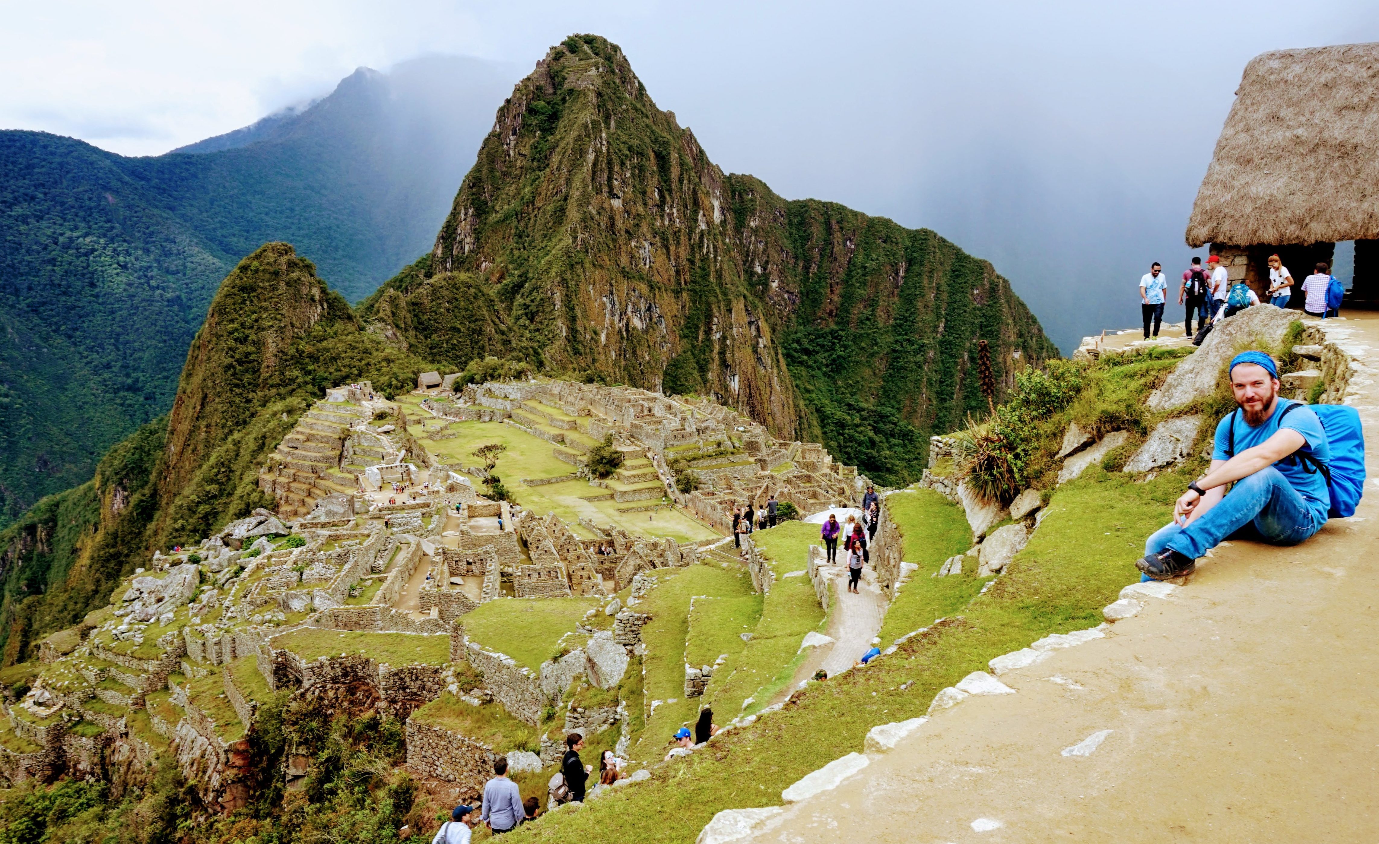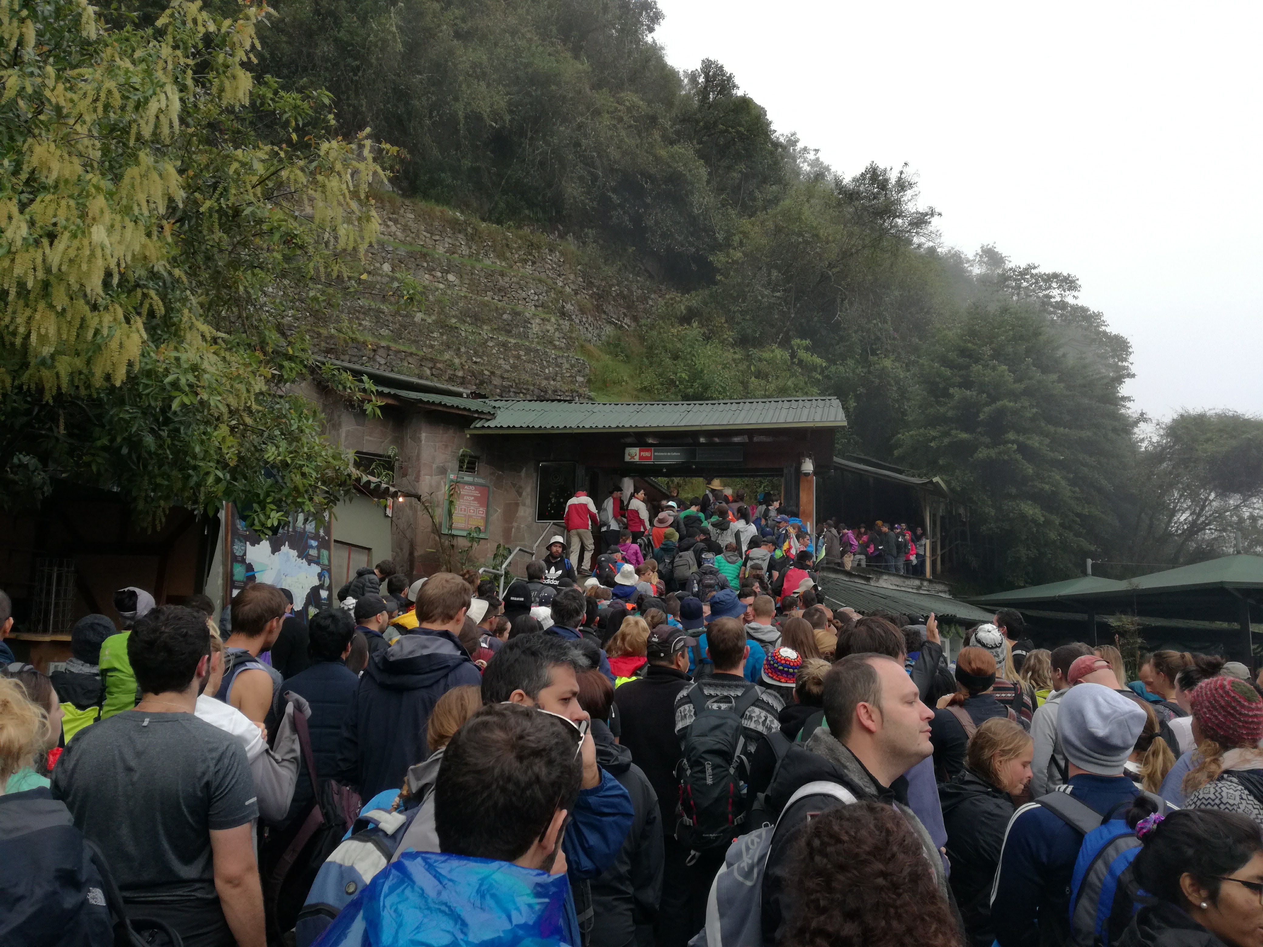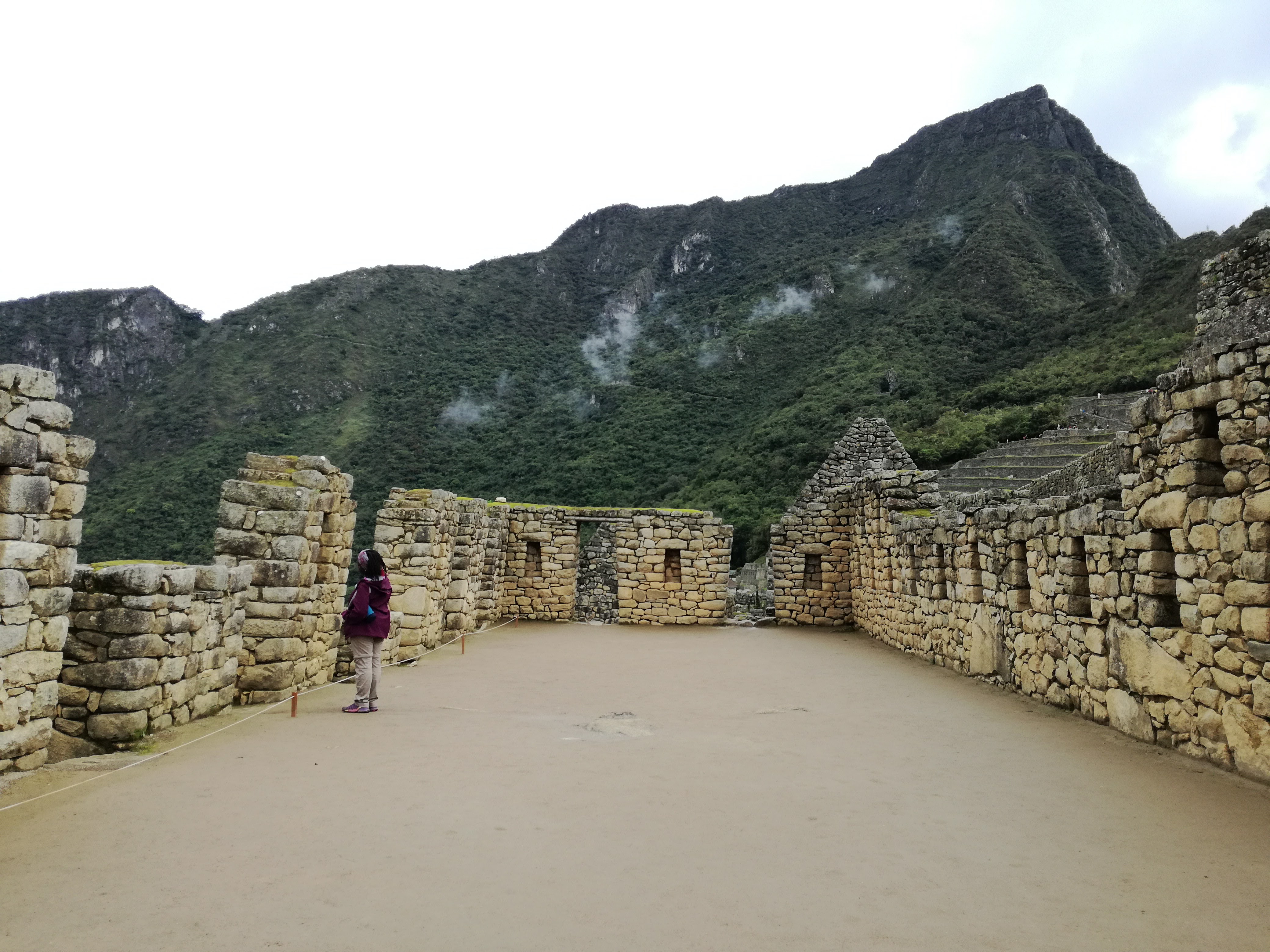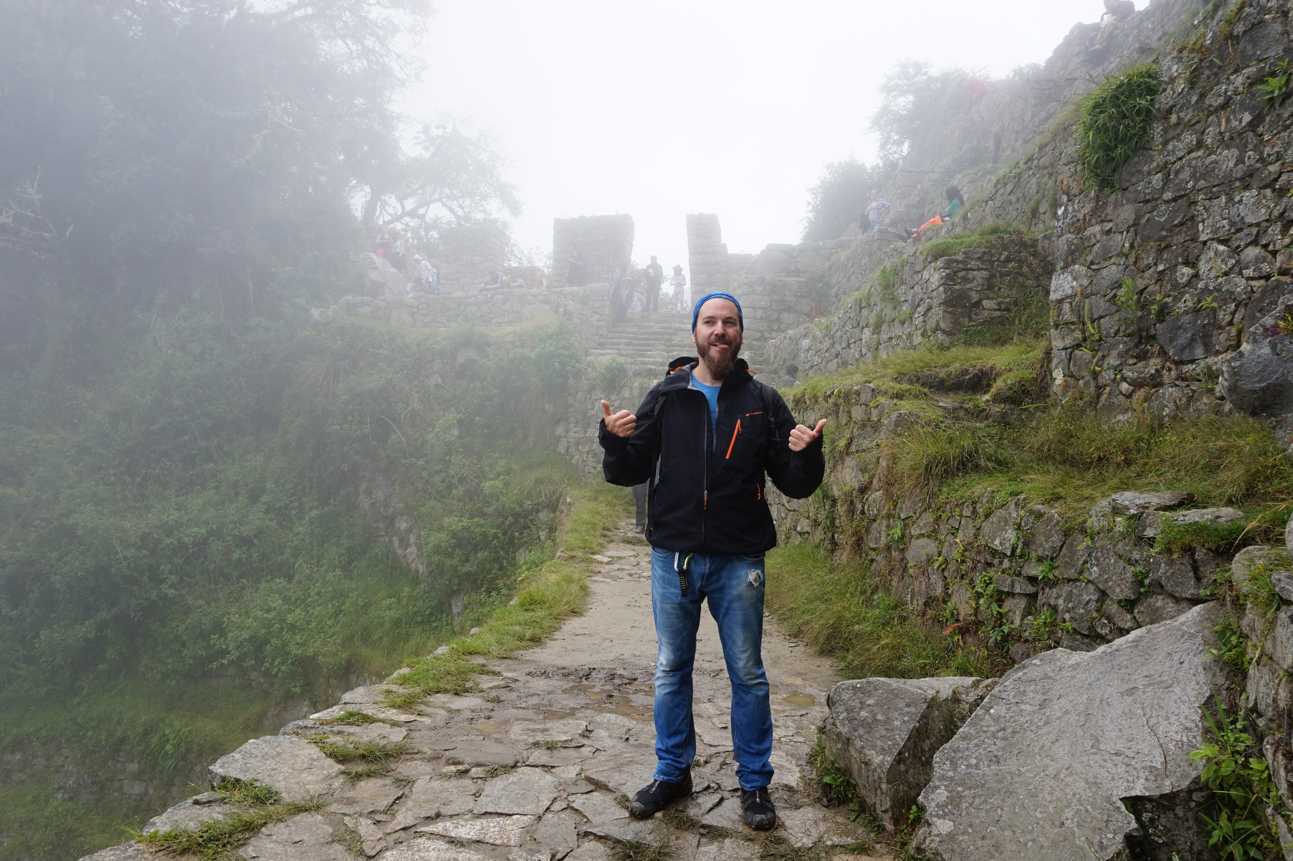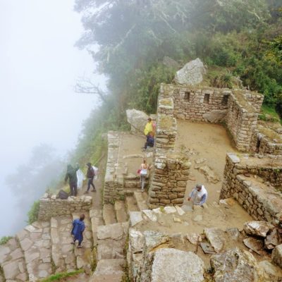 Je vous explique: J’ai décidé de ne pas faire l’ascension du Wayna Picchu car les places pour les deux sites sont limitées et il n’en restait plus pour ce dernier (il faut s’y prendre bien à l’avance, ce qui vous conviendrez est difficile quand on voyage au jour le jour :-)). Pour ce qui est de l’heure par contre, c’est simple, à 7h… il restait encore de la place, pour 10h tout était complet. Enfin au final, nous avons eu la brume et le nuage et le deuxième groupe la brume, les nuages et la pluie :-).