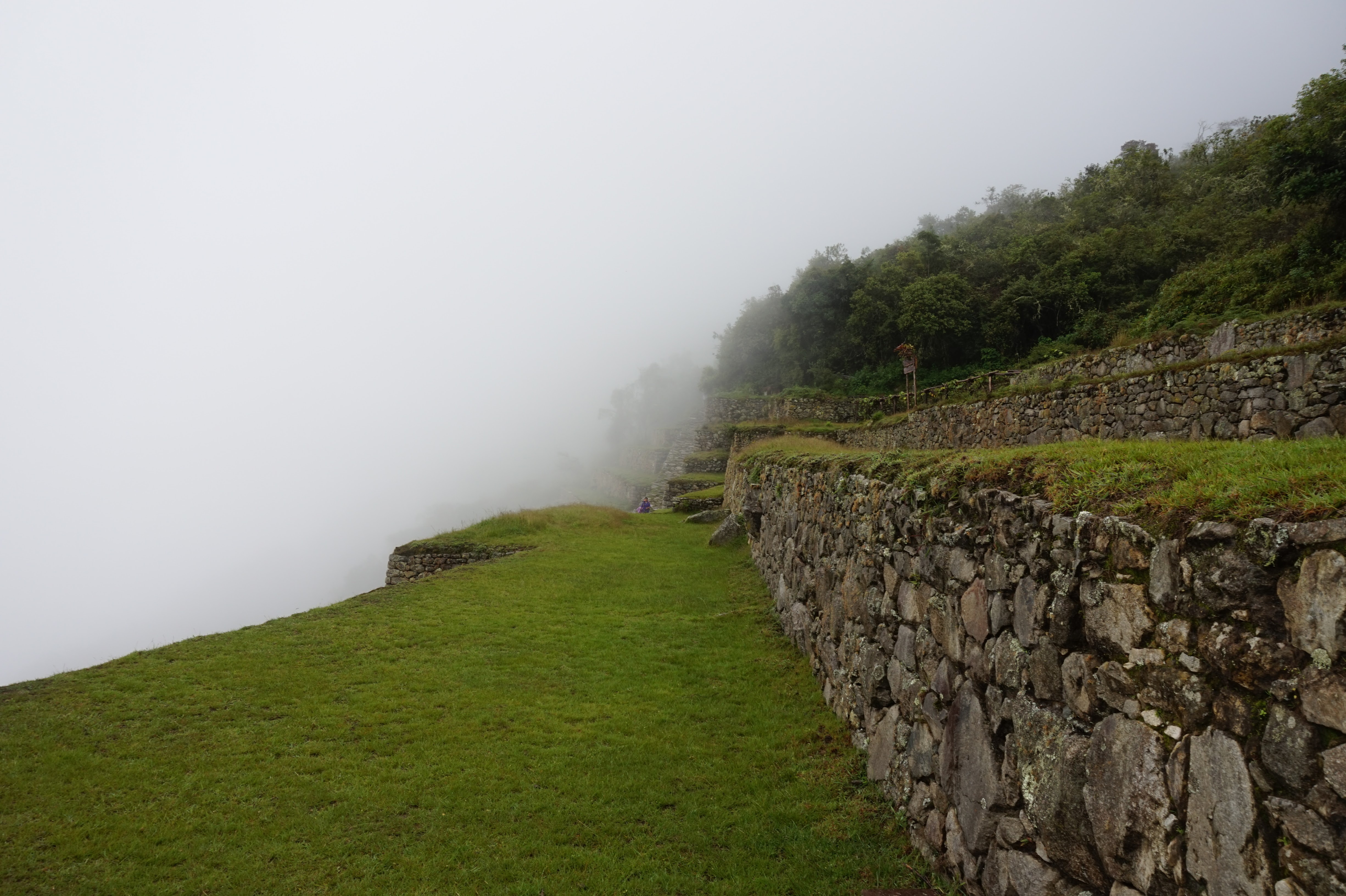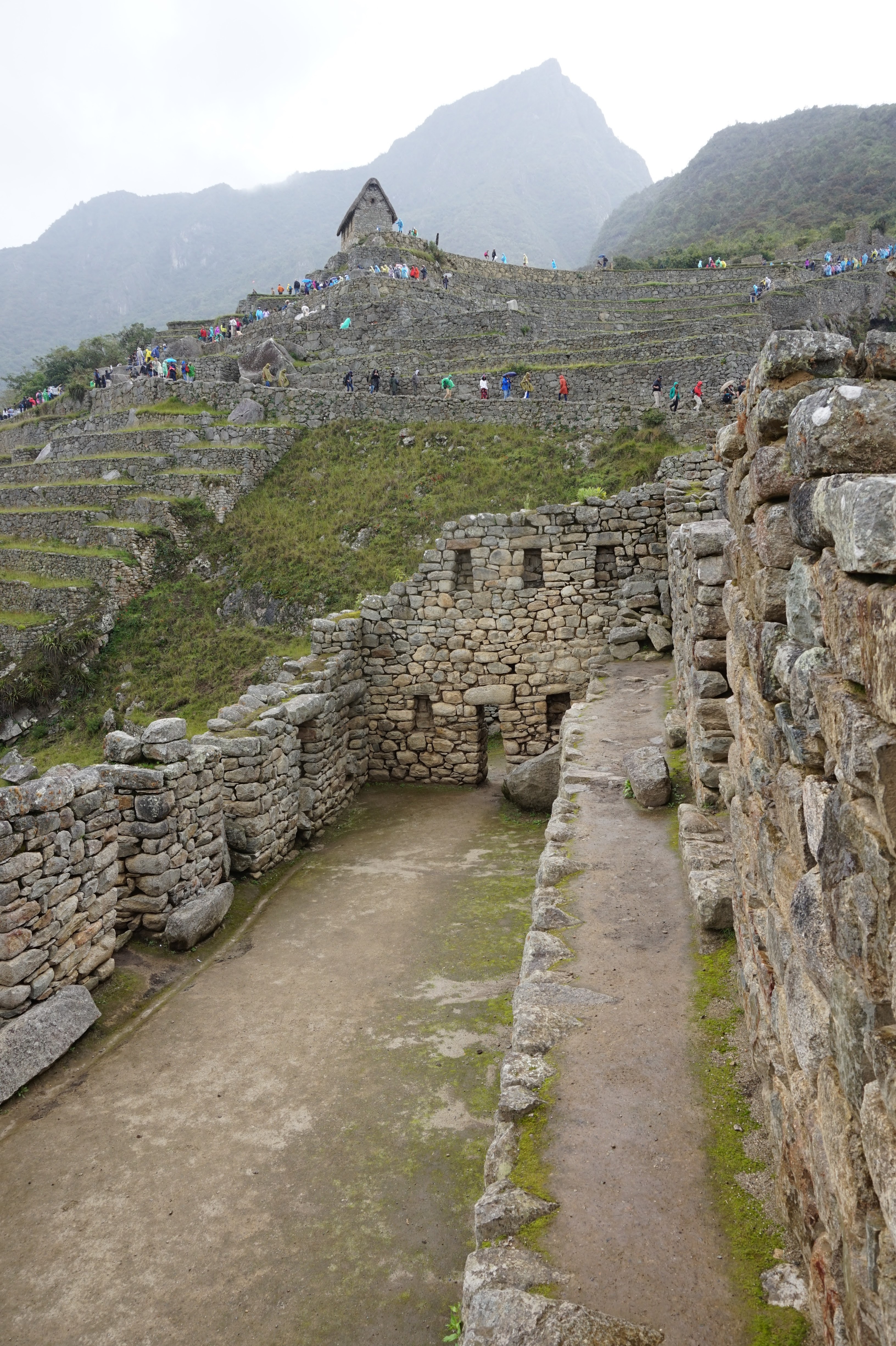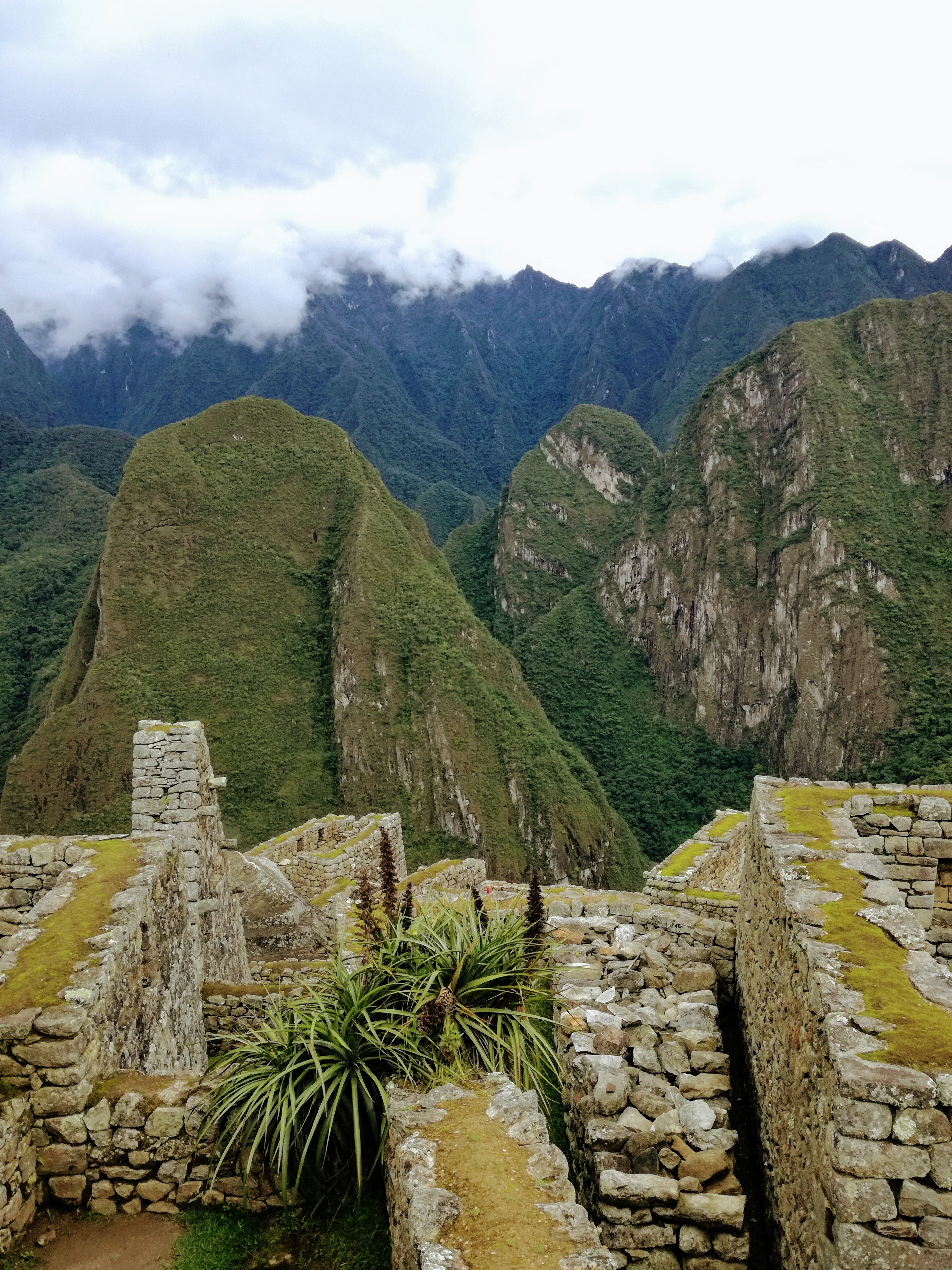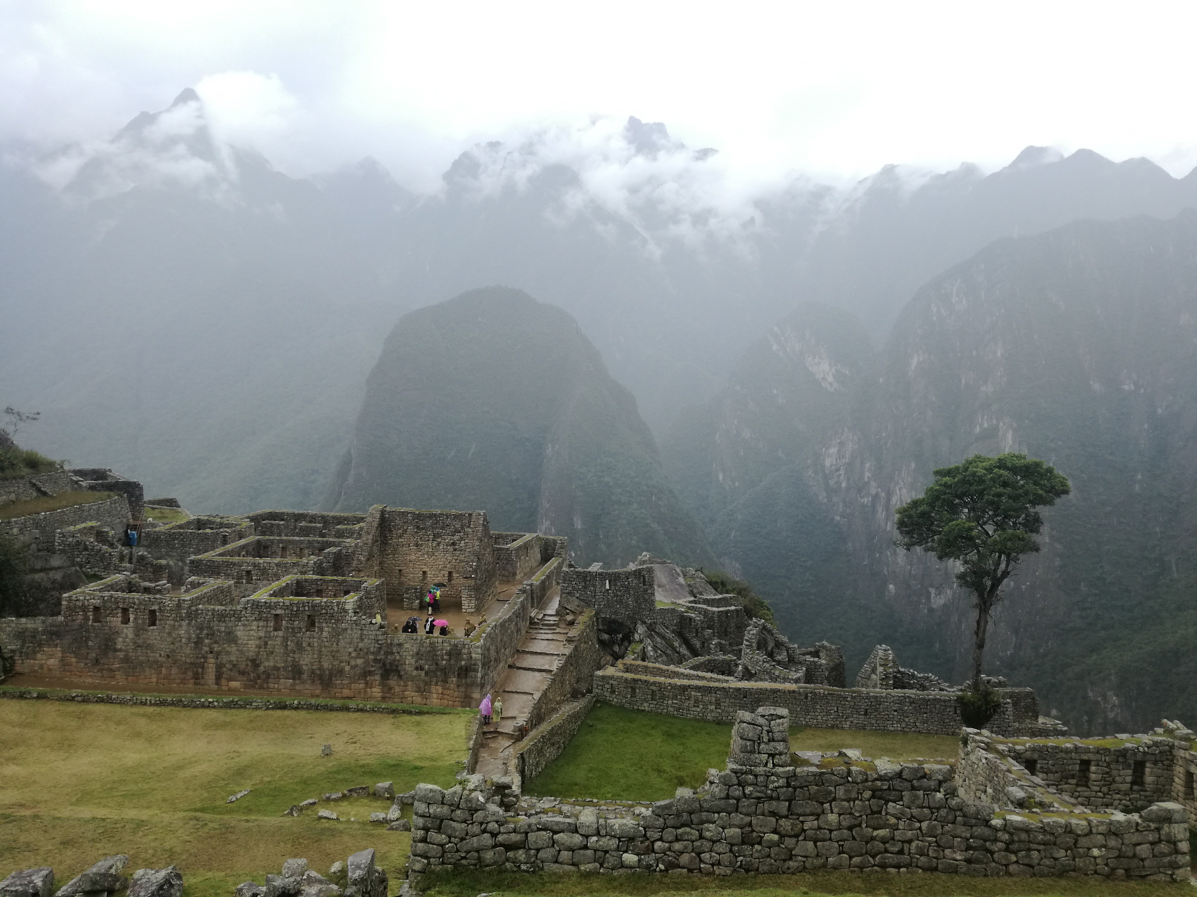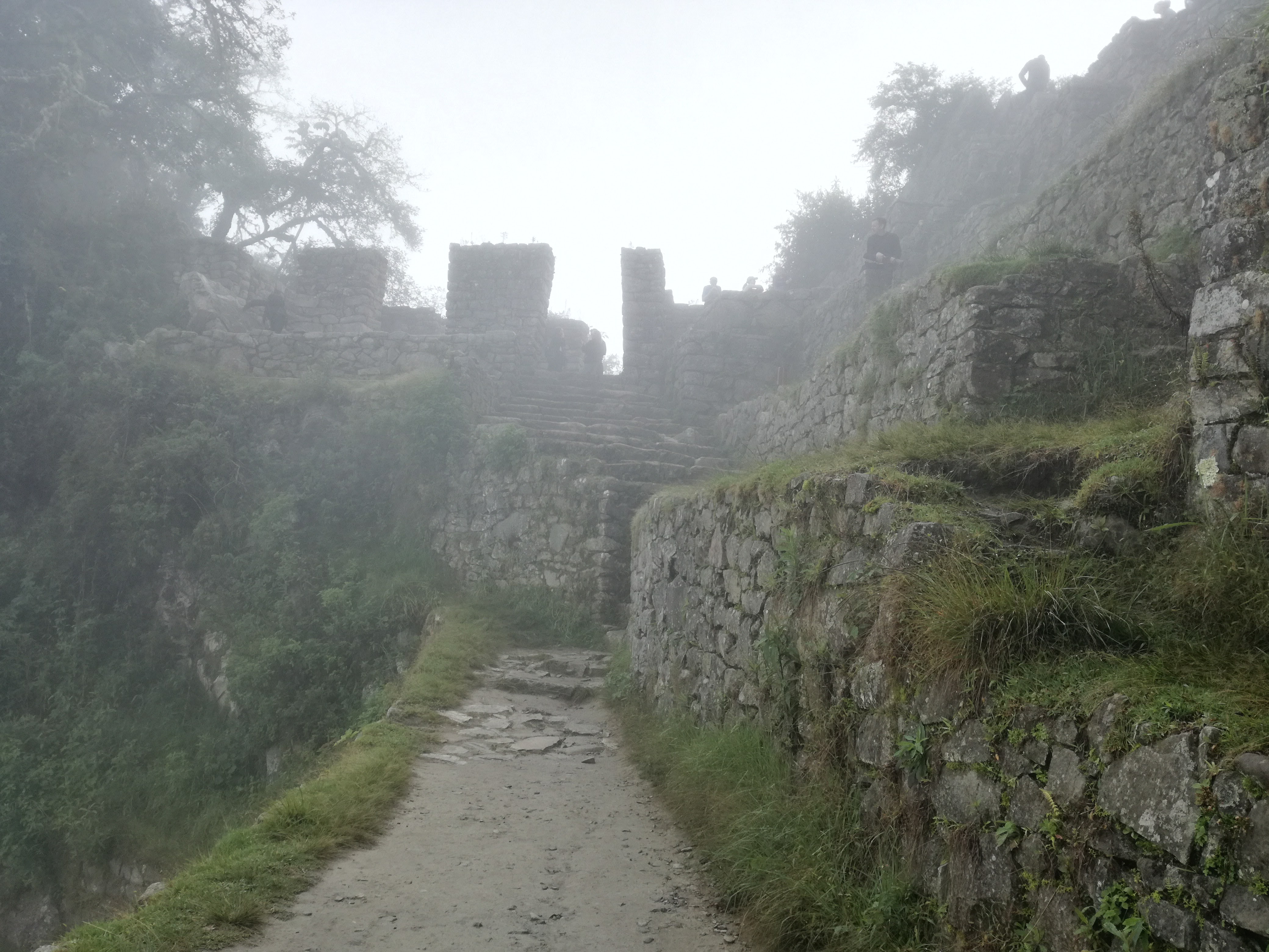 Je vous explique: J’ai décidé de ne pas faire l’ascension du Wayna Picchu car les places pour les deux sites sont limitées et il n’en restait plus pour ce dernier (il faut s’y prendre bien à l’avance, ce qui vous conviendrez est difficile quand on voyage au jour le jour :-)). Pour ce qui est de l’heure par contre, c’est simple, à 7h… il restait encore de la place, pour 10h tout était complet. Enfin au final, nous avons eu la brume et le nuage et le deuxième groupe la brume, les nuages et la pluie :-).
