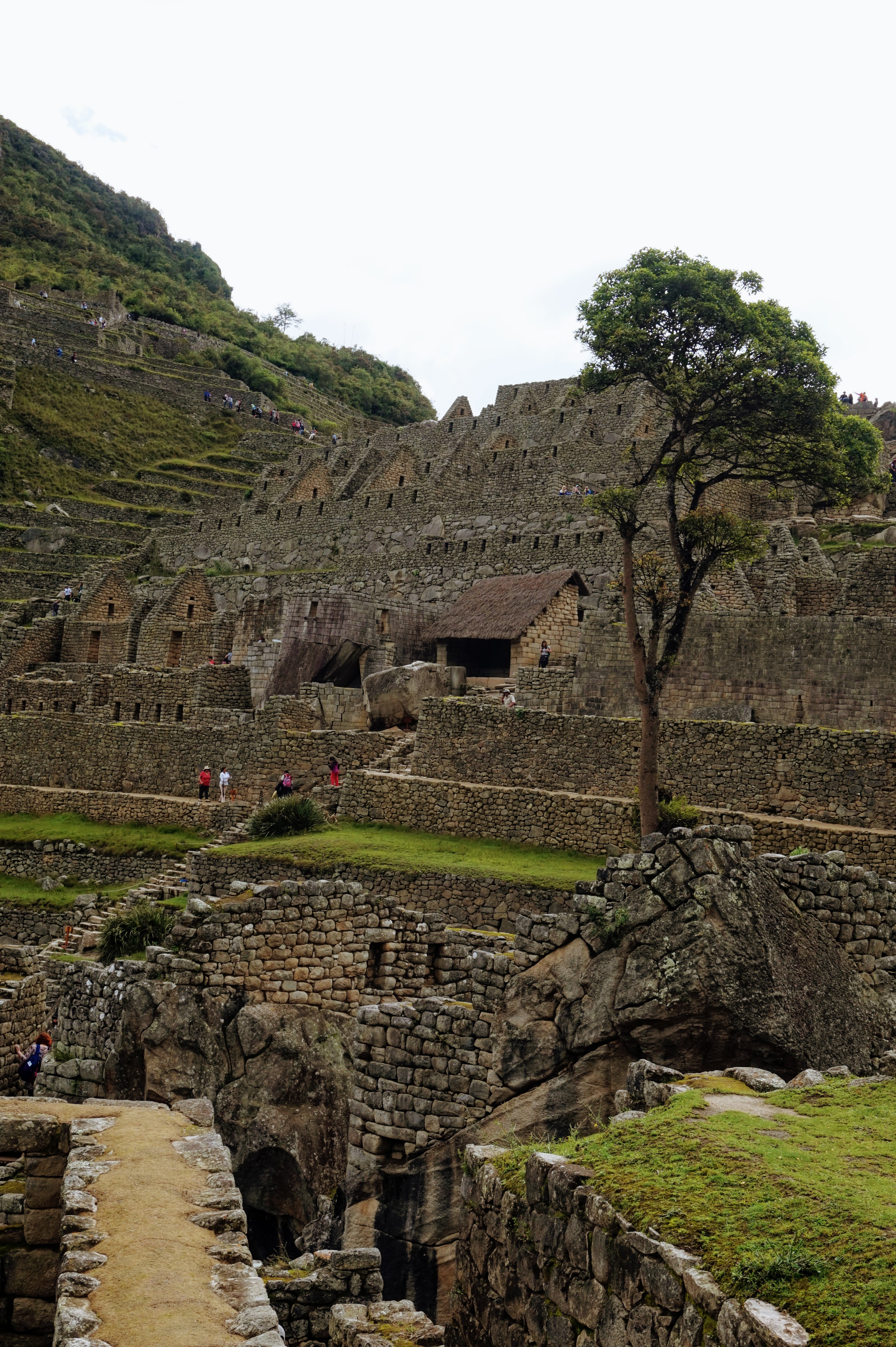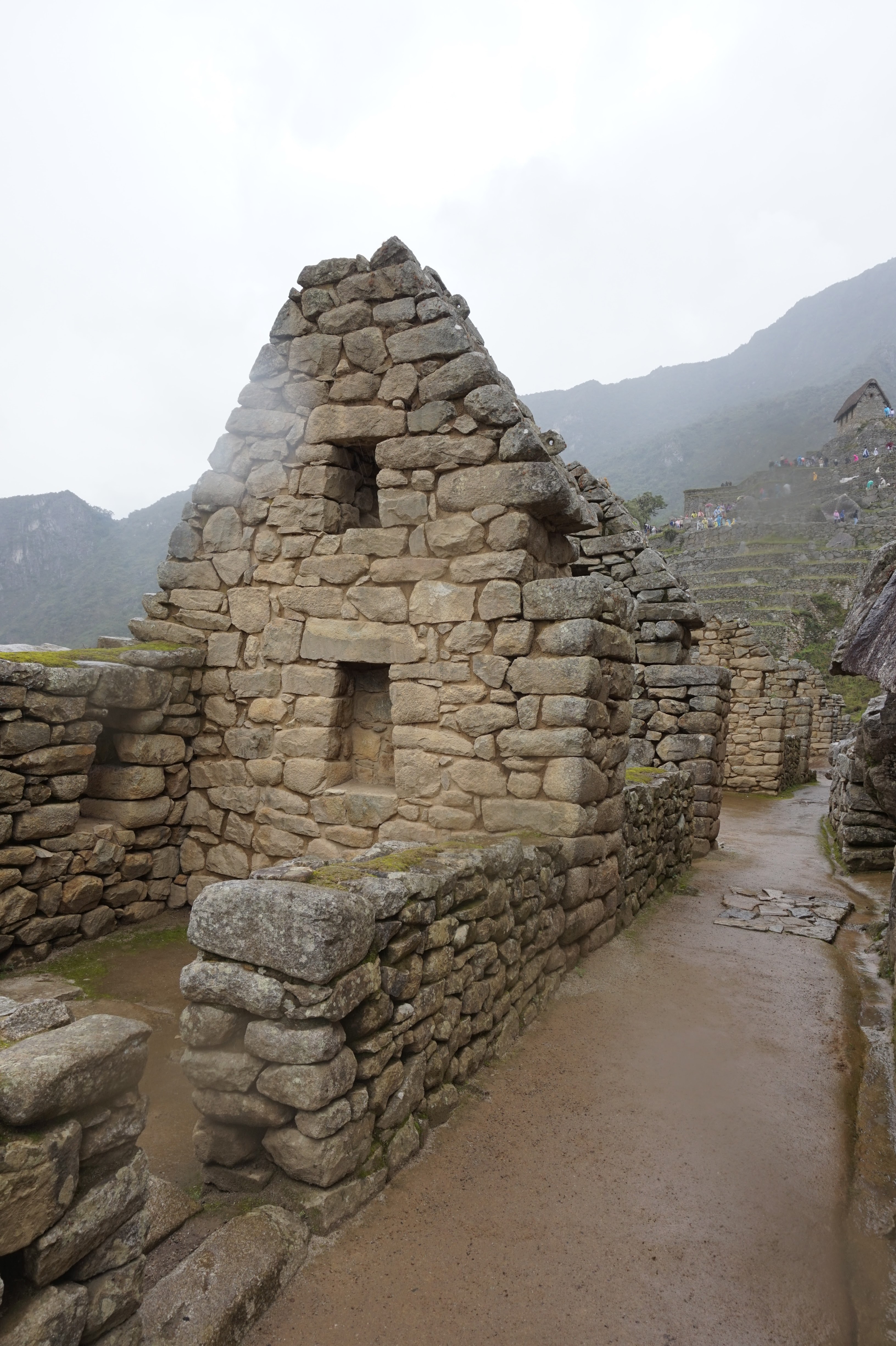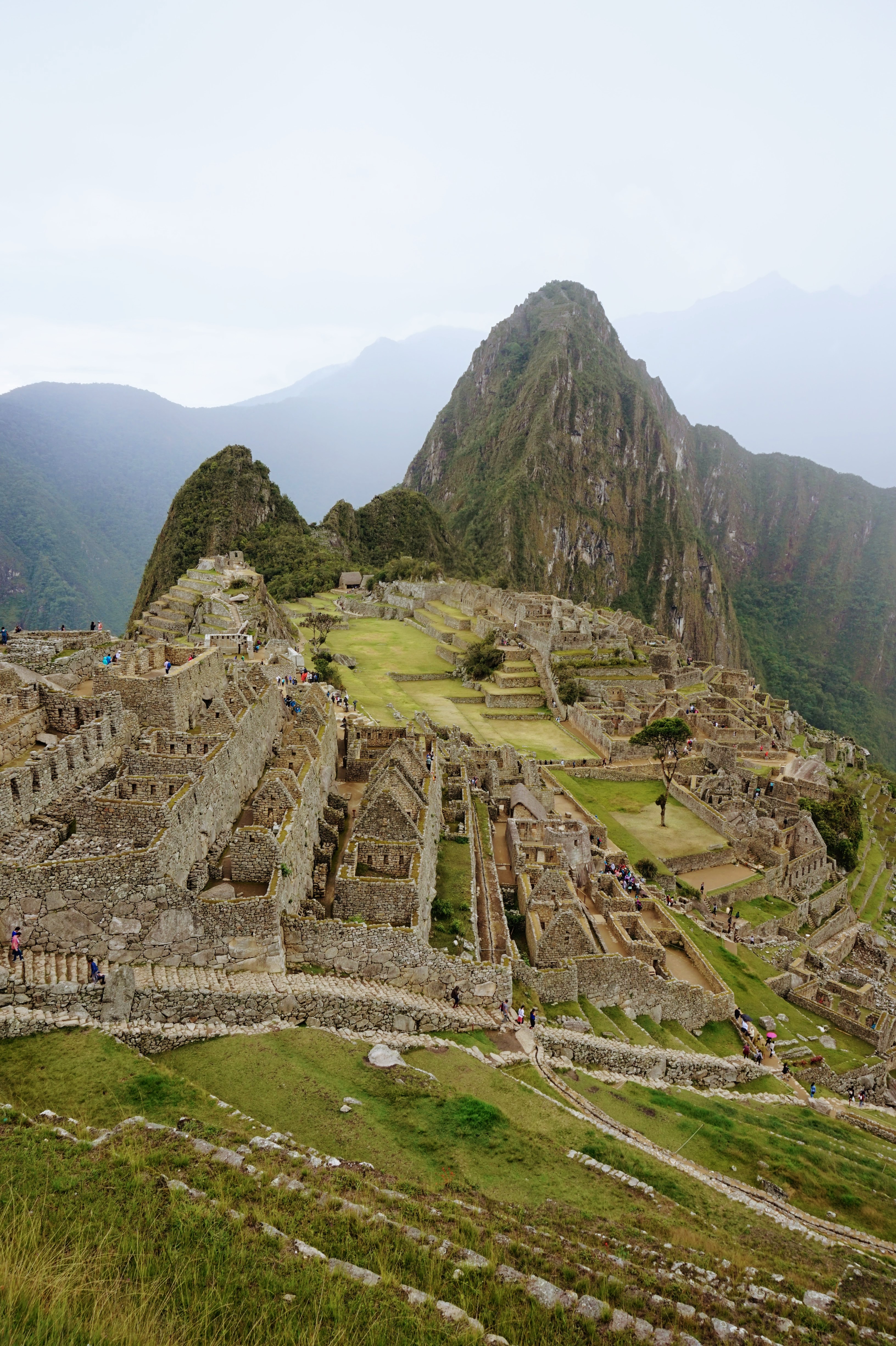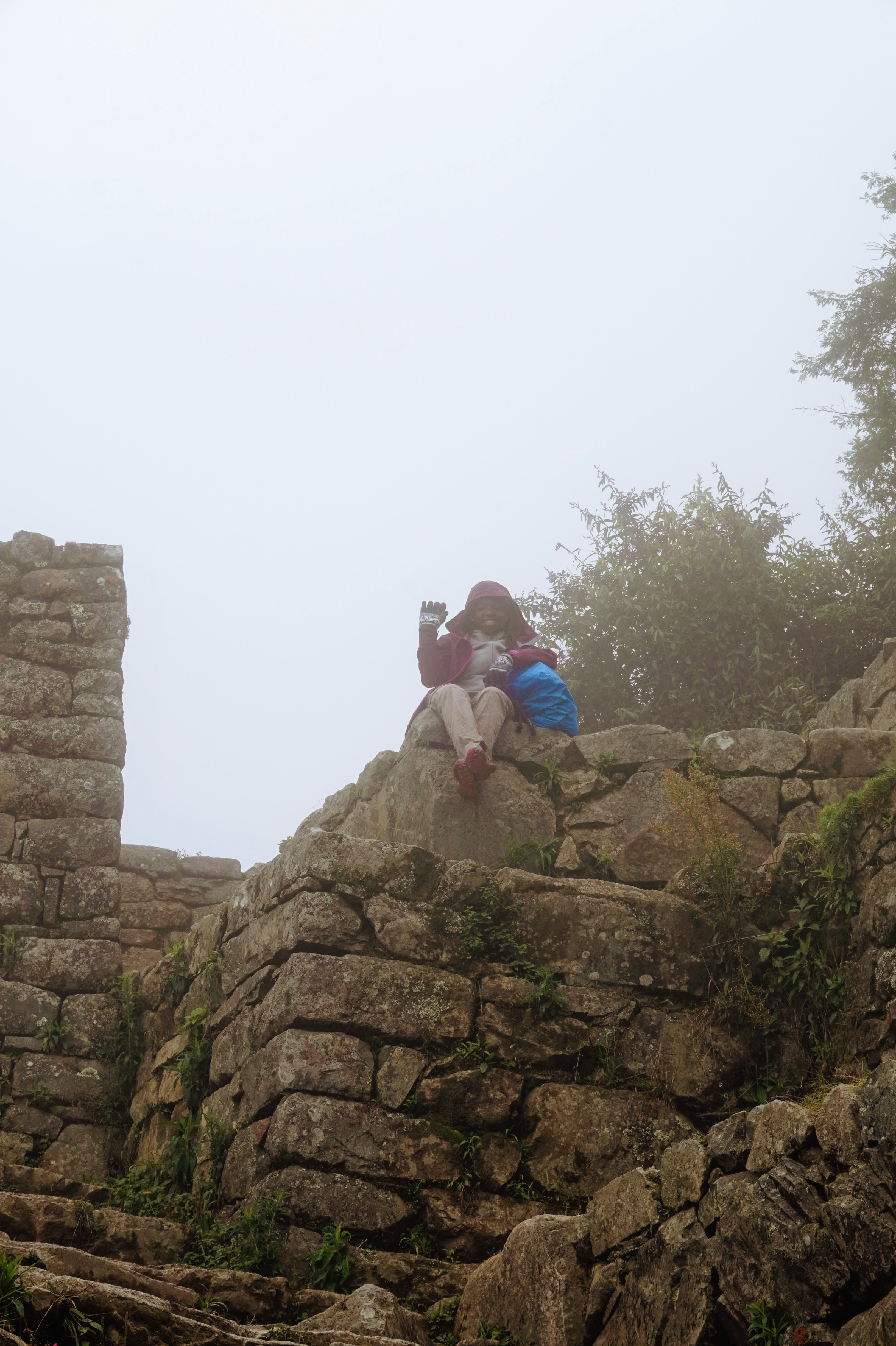 Je vous explique: J’ai décidé de ne pas faire l’ascension du Wayna Picchu car les places pour les deux sites sont limitées et il n’en restait plus pour ce dernier (il faut s’y prendre bien à l’avance, ce qui vous conviendrez est difficile quand on voyage au jour le jour :-)). Pour ce qui est de l’heure par contre, c’est simple, à 7h… il restait encore de la place, pour 10h tout était complet. Enfin au final, nous avons eu la brume et le nuage et le deuxième groupe la brume, les nuages et la pluie :-).