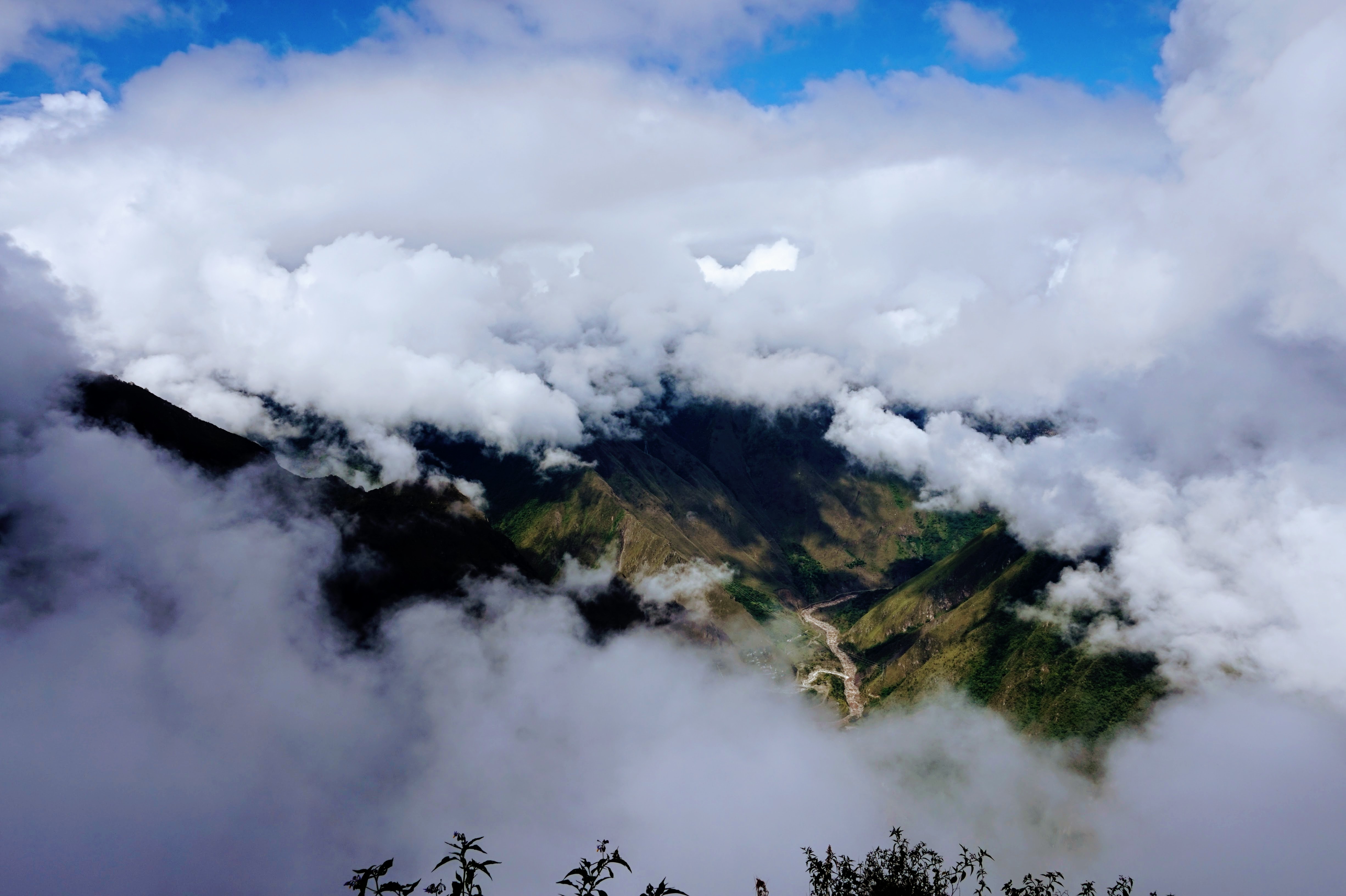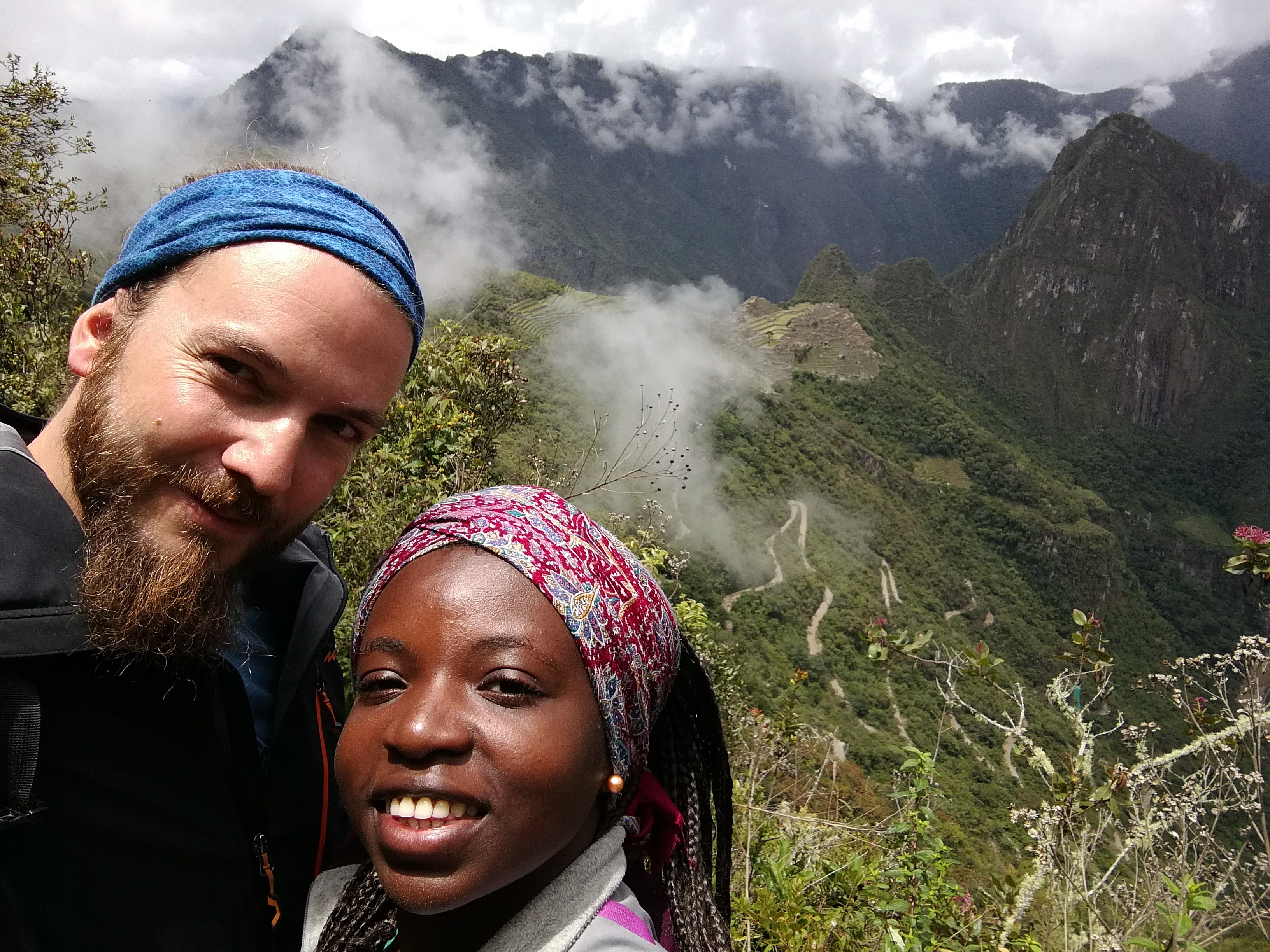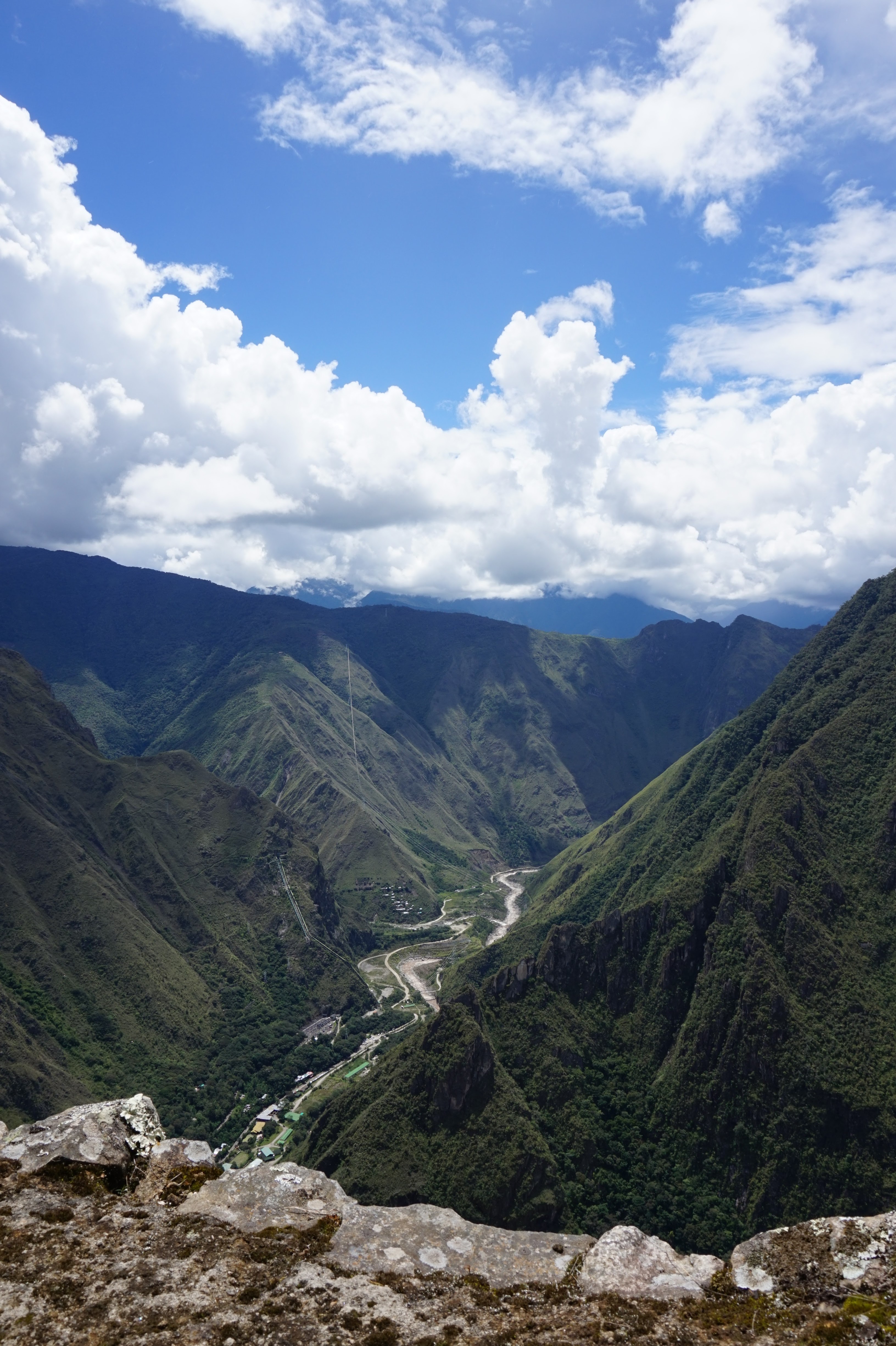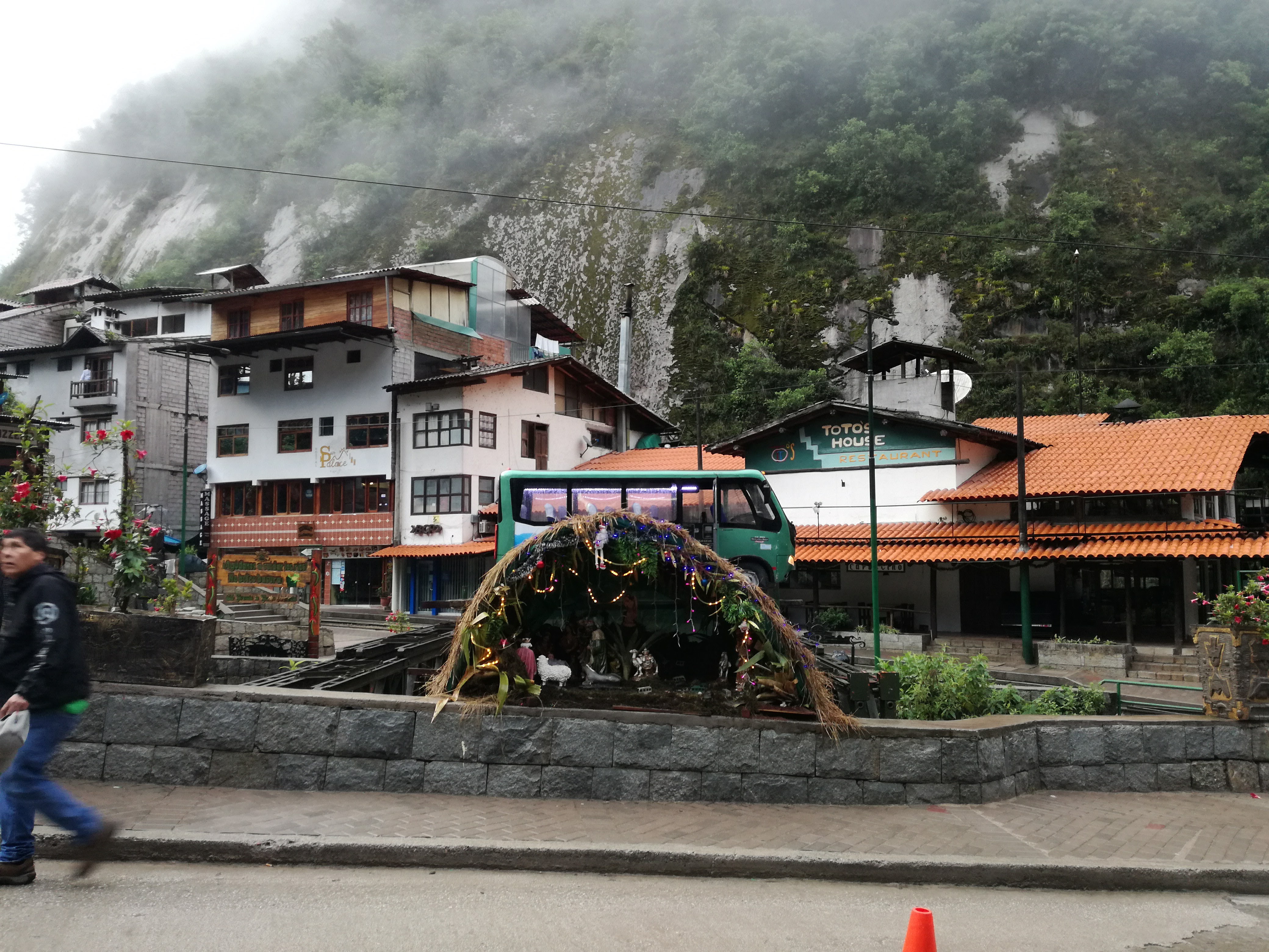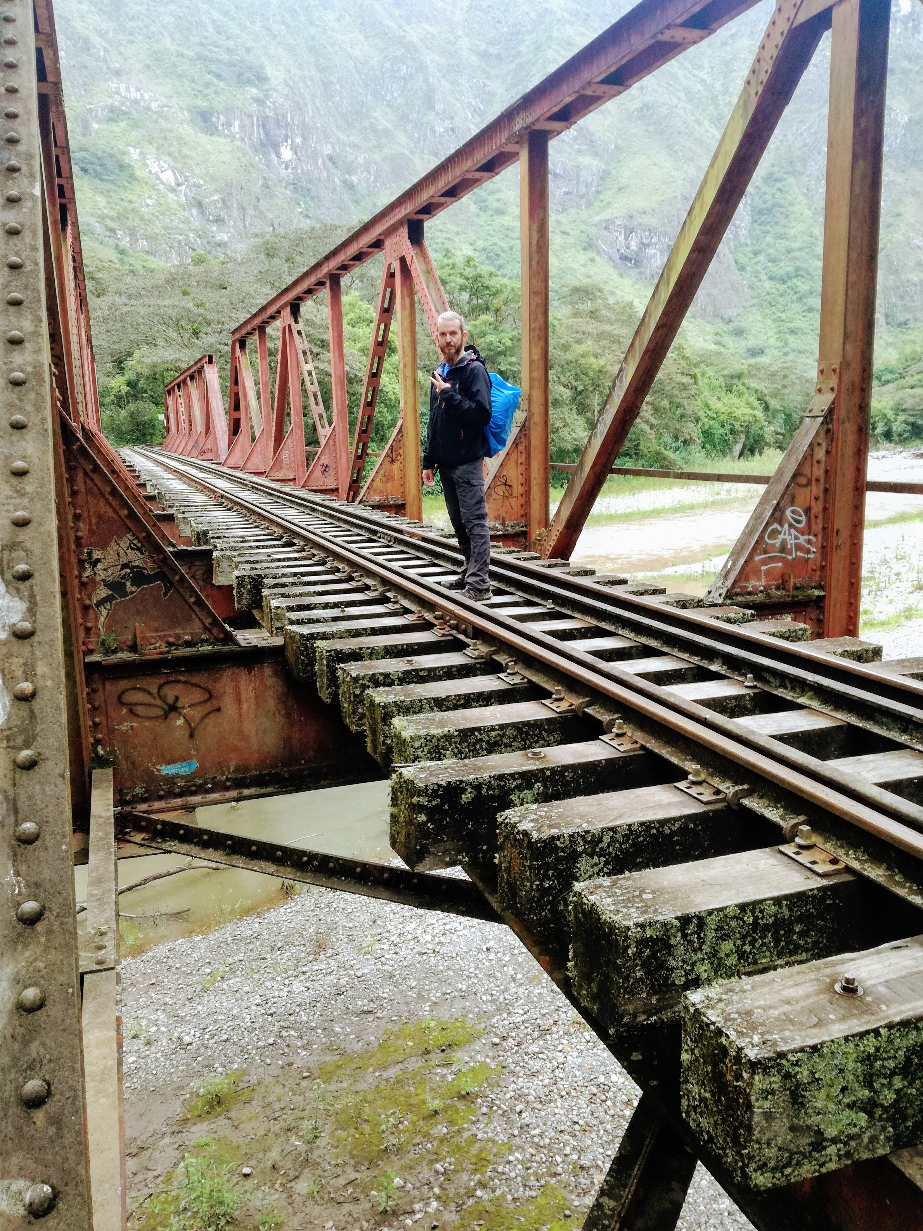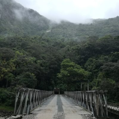 Nous sommes jeudi 29 décembre, il est 7h30 quand nous nous mettons en route en combi pour 7h30–8h de trajet (compter 70 soles pour l’aller-retour en combi jusqu’à Hydroélectrica, contre minimum 80 dollars juste pour un aller en train :-)) sur des petites routes de montagnes avec un chauffeur qui à passé la majorité du son temps au téléphone, ce qui a provoqué une petite frayeur quand on est passé très proche d’un ravin suite à un croisement avec une autre voiture. Des beaux paysages d’accord mais serré comme des sardines en boite et secoué dans tous les sens. Il est 14h30′ quand nous arrivons à Hydroélectrica, le temps est clément, nous mangeons un petit bout et prenons la route pour cette fois-ci 2h30′ de marche le long de la voie ferrée, entouré de montagnes et de paysages magnifiques,