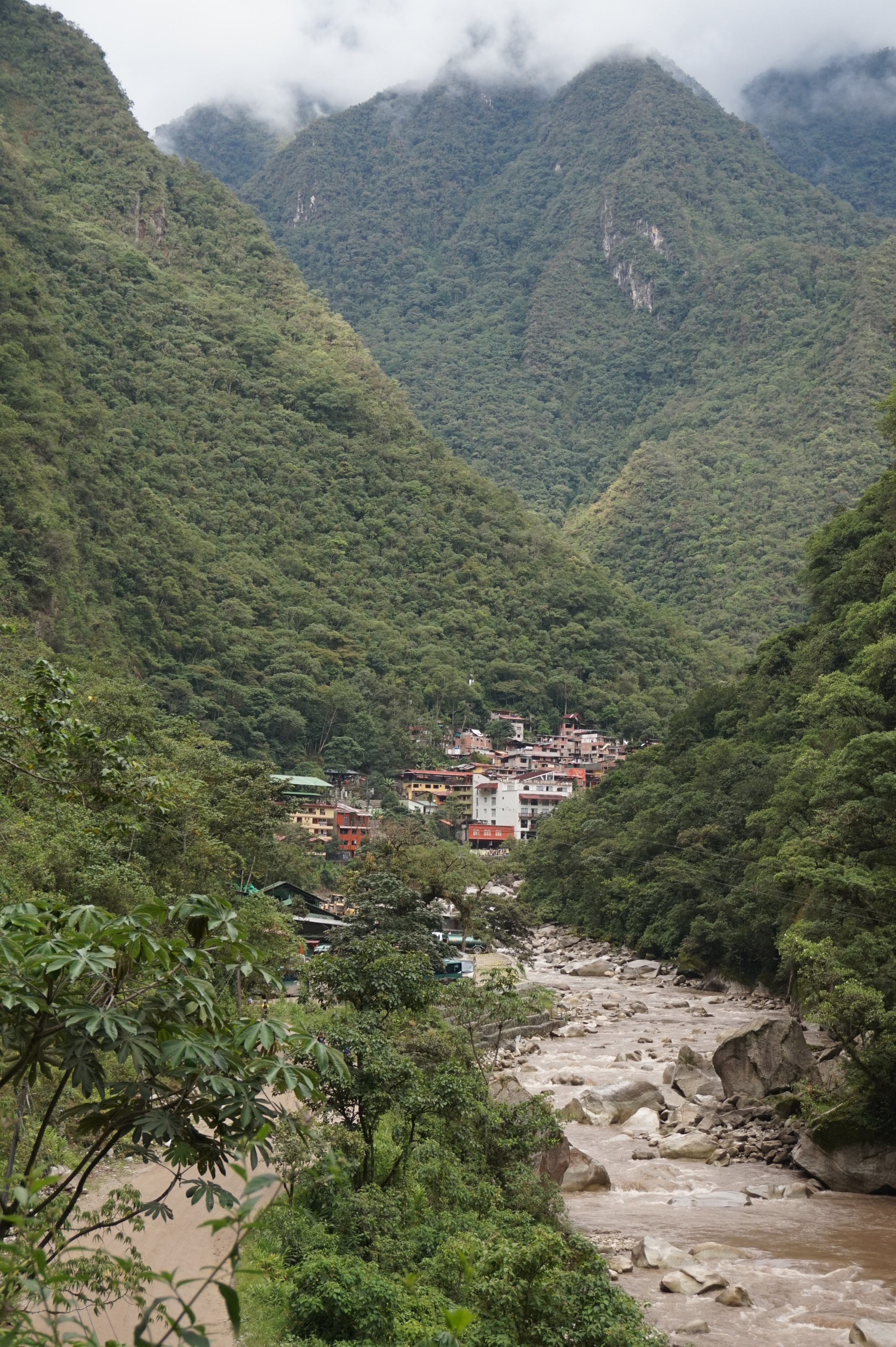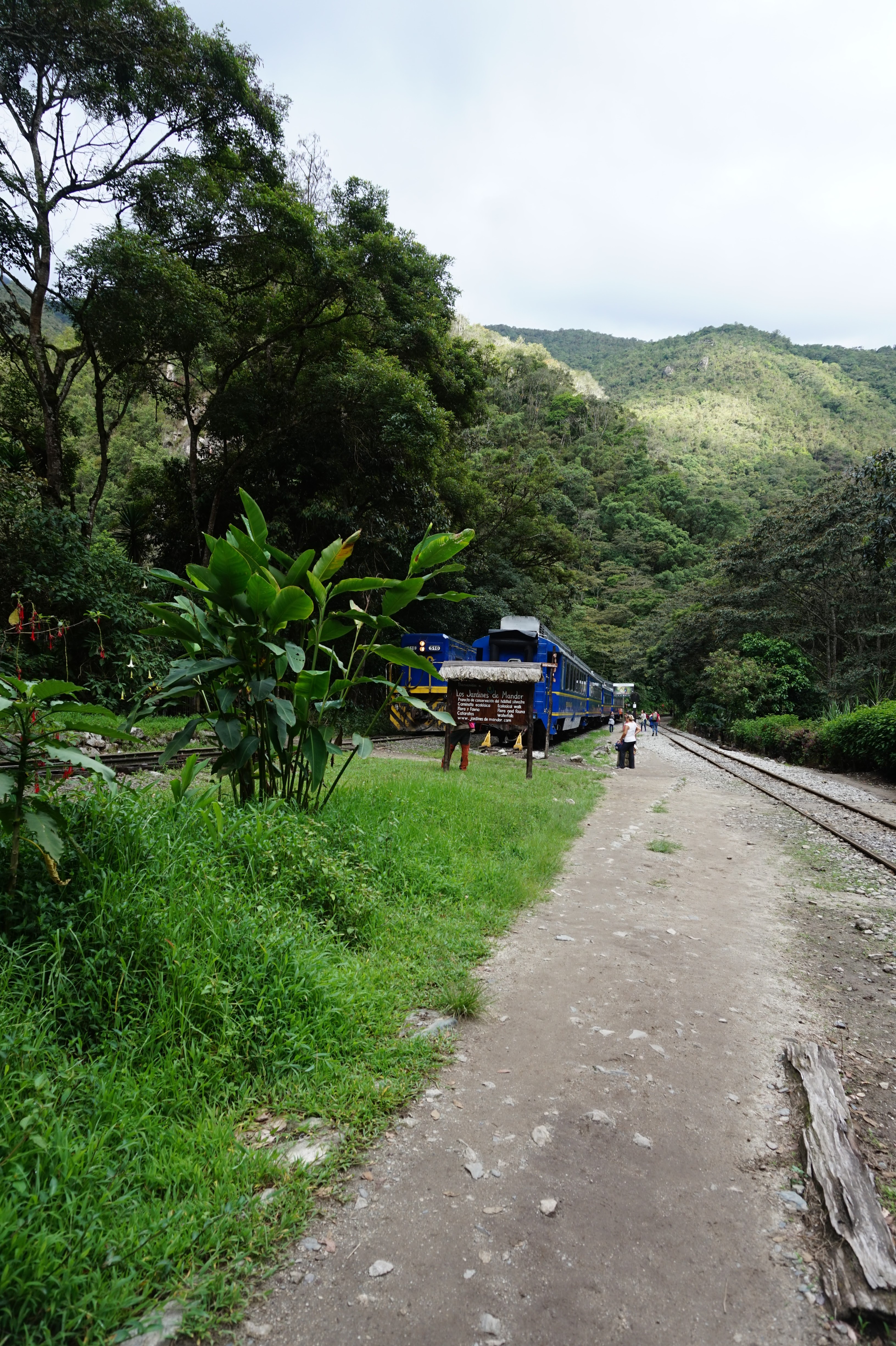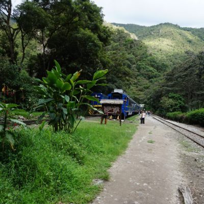 pour rejoindre Aguas calientes, petite agglomération dans une profonde gorge en contrebas des ruines appelée aussi Machu Picchu Pueblo. Passage presque obligé si on veut profiter du site dés l’ouverture.