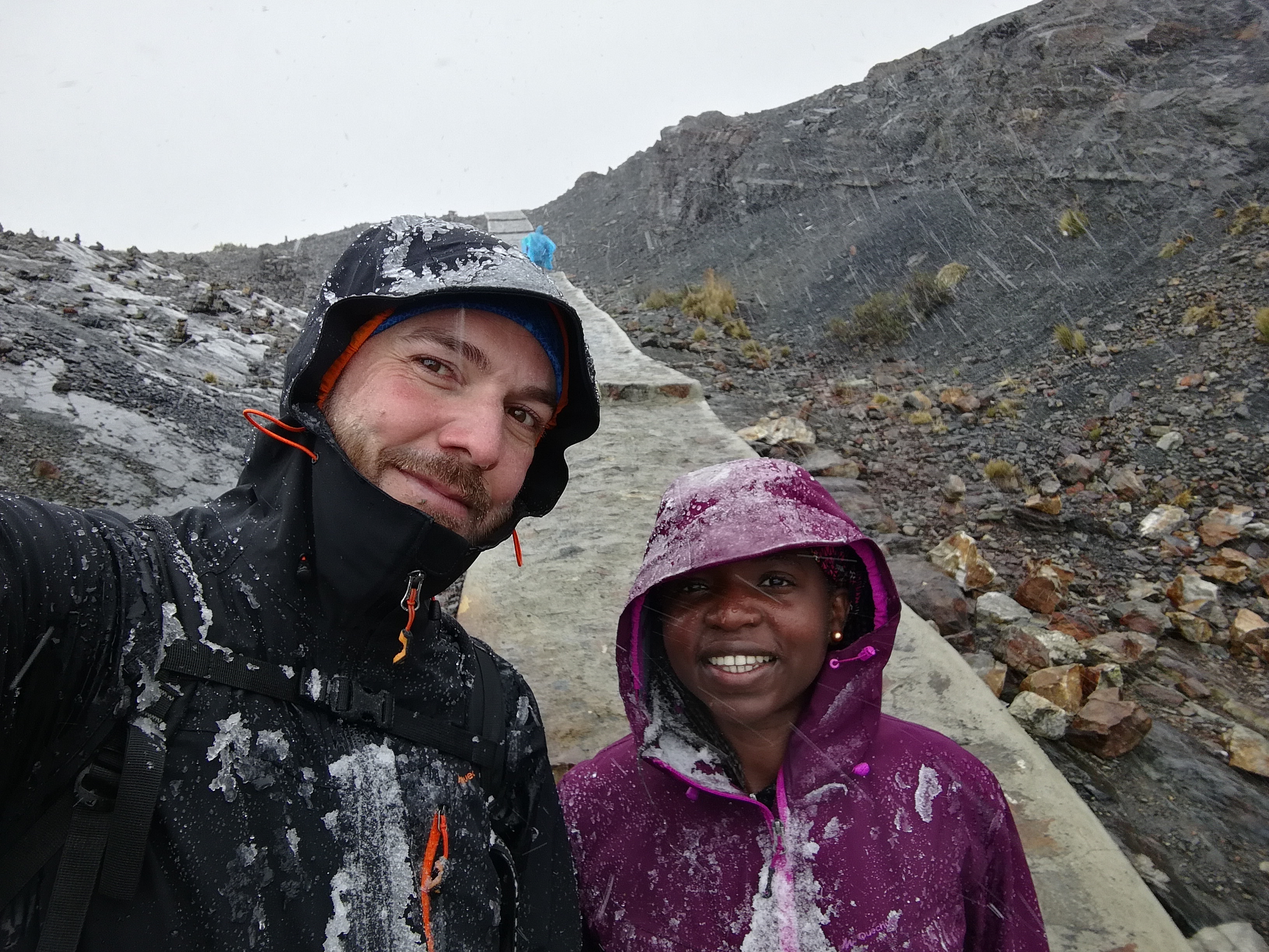 Lundi, toujours sous le soleil pour l’instant (croisons les doigts pour que ça dure jusqu’à mardi soir), nous partons cette fois-ci pour le Nevada Pastoruri au parc national Huascaran connu pour ses grottes gelées et ses glaciers en s’arrêtant à Caraz pour voir les gigantesques Puya raimondii (une plante de plus de 2m de haut qui peut vivre jusqu’à 150 ans), encore une belle journée malgré la grêle et la neige :-).