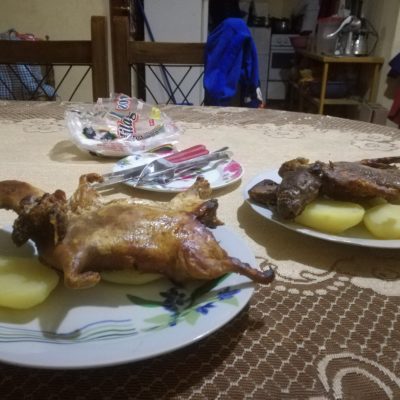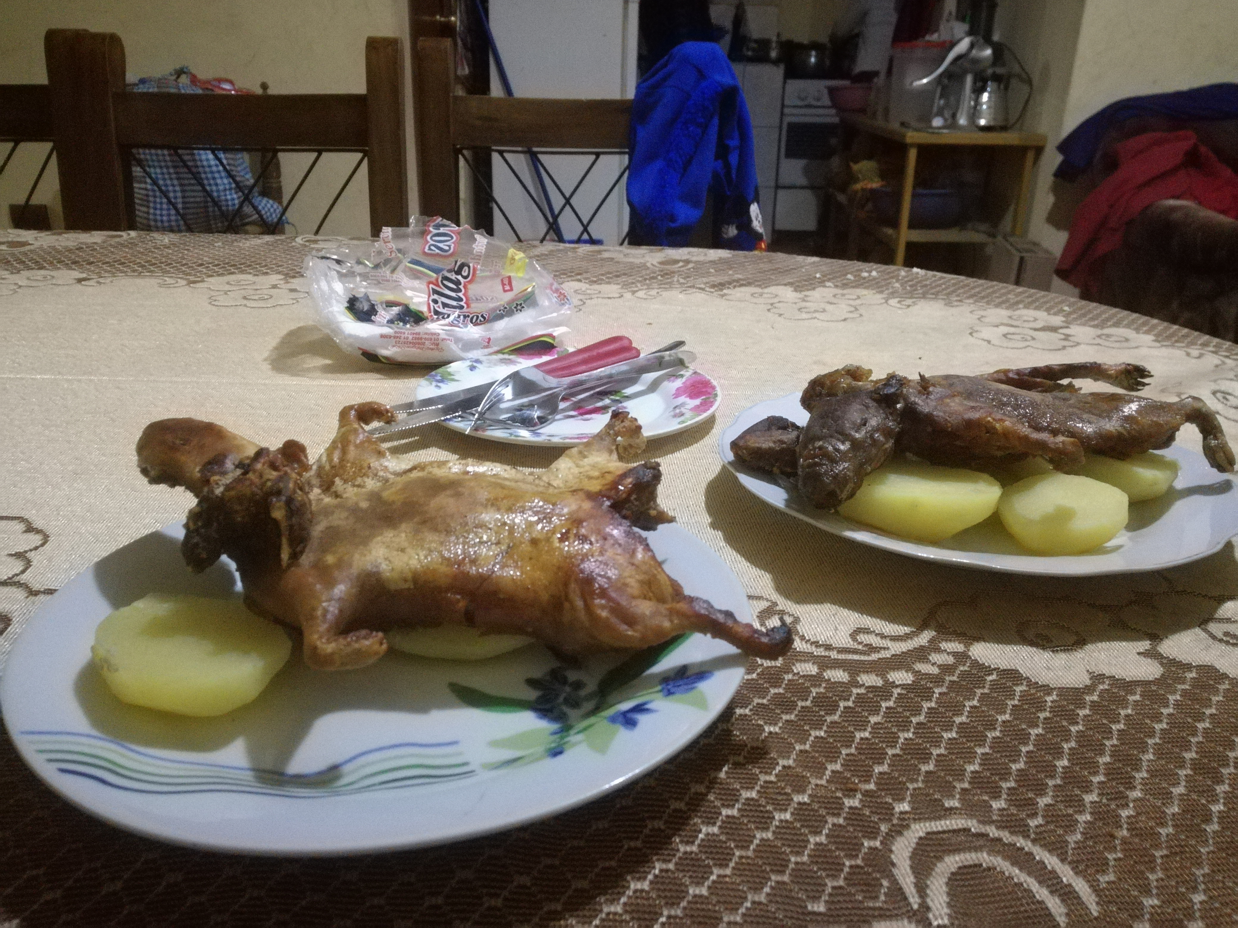 Un petit mal de tête en descendant, une bonne sieste et nous voilà de retour pour manger avec la famille de l’hostal, un cuy (cochon d’inde) entier préparer par la maman (Quand on sait que c’est le genre de plat que l’on mange pour les grandes occasions, ça fait plaisir :-)).