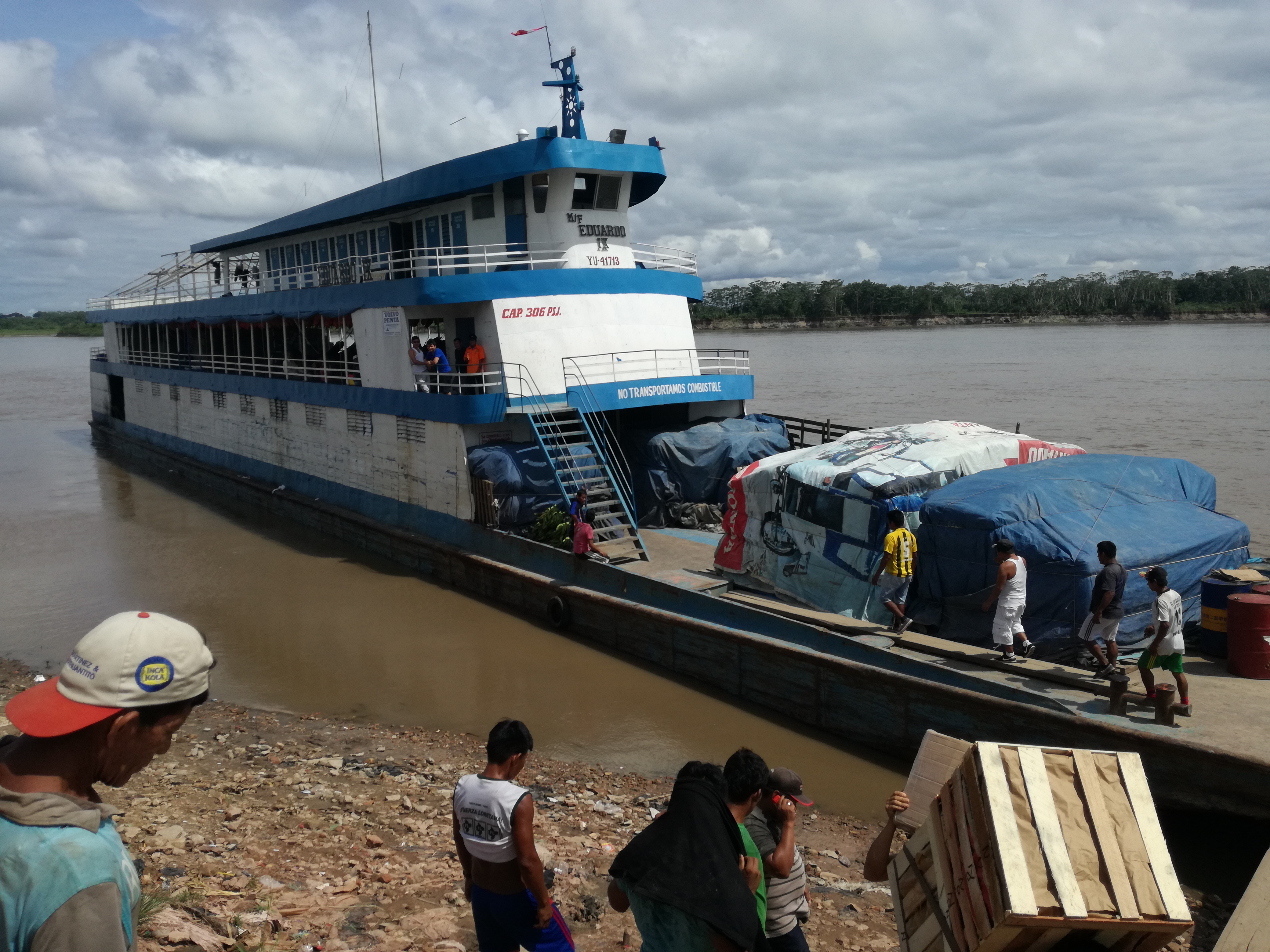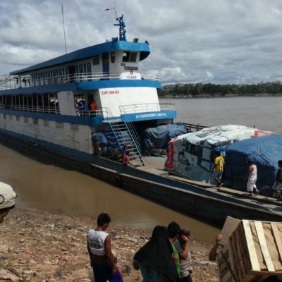 Enfin bref pour la faire courte, on arrive à l’hostal, on paye notre magnifique chauffeur moins qu’il ne l’a demandé car je pense qu’il voulait qu’on lui donne un mois de salaire sur un plateau, on fait quelques recherche sur le net (vive internet dans ces cas-là) on appelle un numéro, un autre, encore un autre, eurêka quelqu’un répond. La personne au bout du fil nous dit qu’un bateau serait là le lendemain et nous dit de nous rendre au port vers midi. Pour ce qui est de l’heure du départ cela peut varier de quelques heures à quelques jours, selon le chargement, le nombre de passager et le niveau des eaux. La chance à tourner, notre bateau devait démarrer le vendredi matin et on est parti le jeudi soir. Tout le monde vous dira qu’il faut arriver bien à l’avance et dormir déjà la veille du départ annoncé sur le bateau car ce n’est certainement pas ici qu’ils vont vous attendre à quai.