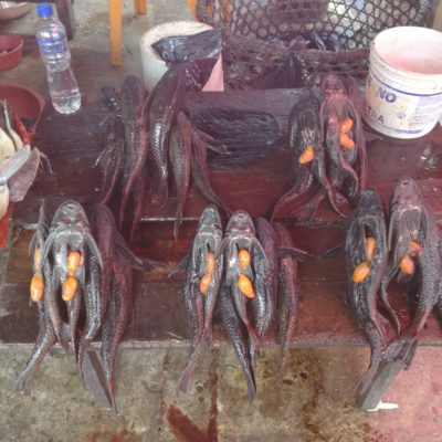 Nous nous sommes arrêtés à pas mal de petits villages pour livrer de la marchandise, nous avons pu observer des dauphins rose, et ce fut aussi notre première expérience (pas sexuelle) de dormir en hamacs et pas n’importe où 🙂 Pour ma part ça s’est très bien passé, mais Aurélie vous dira que je dors n’importe où. Pour Aurélie par contre… Oh et puis on s’en fout, elle passe son temps à se plaindre celle-là, non je rigole ce n’était pas le plus confortable mais elle a survécu (malheureusement :,-().