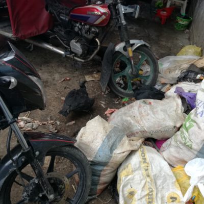Nous chopons deux motos taxis, non pas celui juste là car il demandait trop cher, l’autre là-bas, garer un peu plus loin au coin de la rue pour aller au terminal prendre …. ENCORE UN COMBI bordel de mer.. !