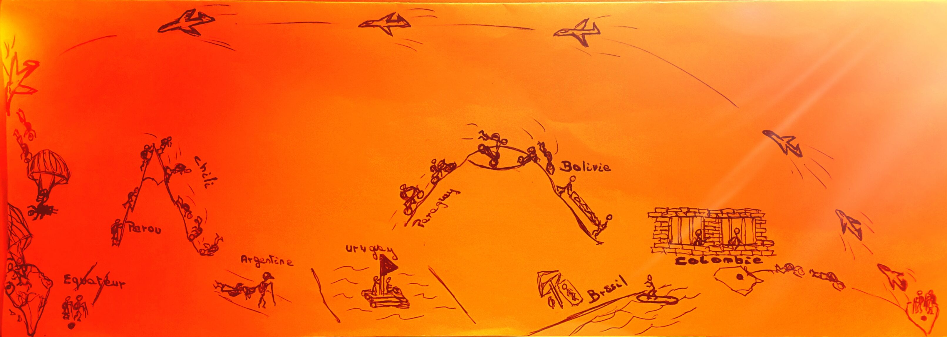 Ensuite viendra si tout va bien et que nous sommes encore là-bas,le Pérou, le Chili, l’Argentine, l’Uruguay, le Paraguay, la Bolivie, peut être bien le Brésil et on terminerait par la Colombie.